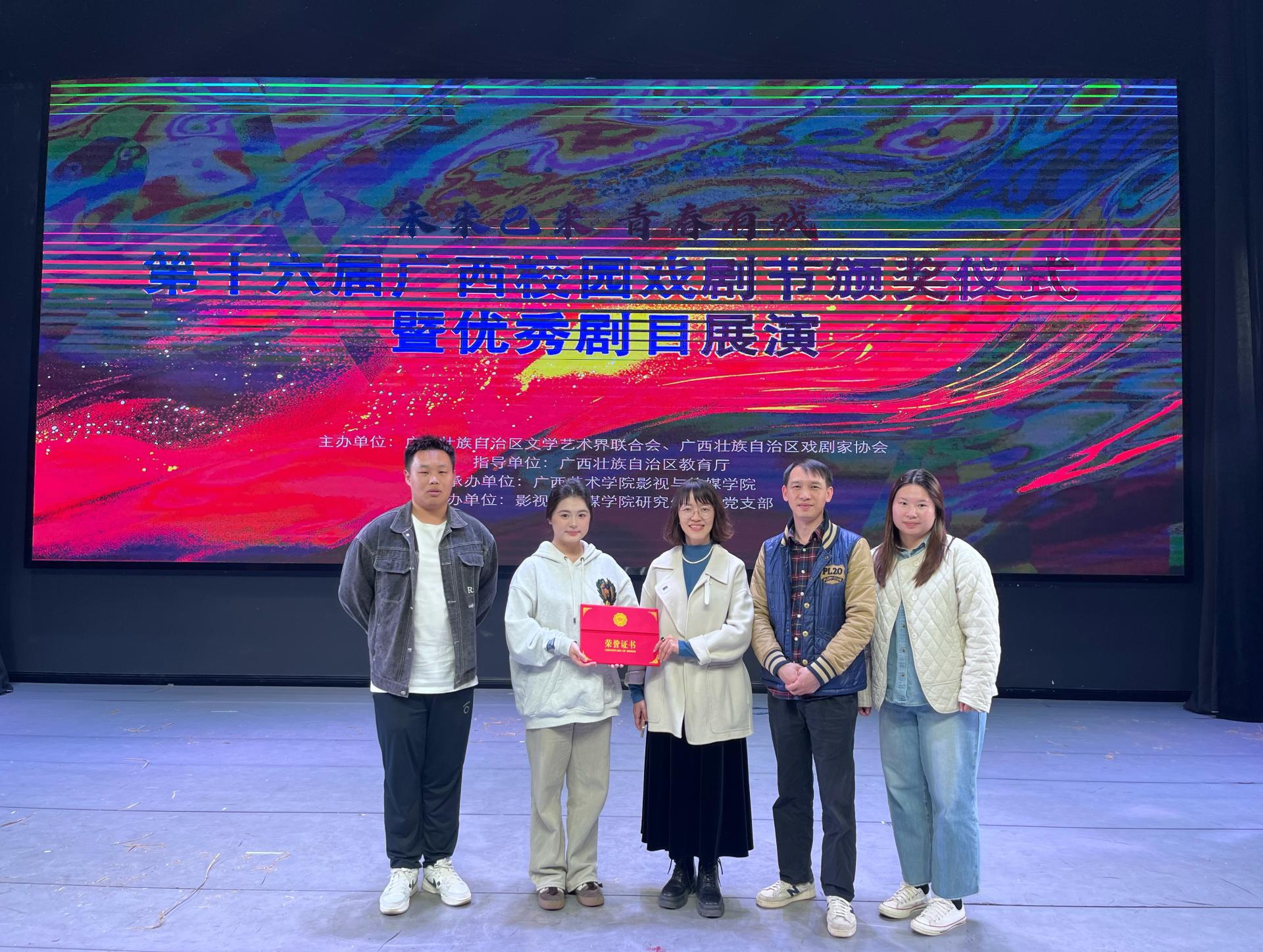 近日,第十六届广西校园戏剧节评选结果揭晓,由国际贸易学院学生党支部精心打造的原创话剧《桂子飘香》脱颖而出,荣获大剧类优秀剧目称号,成为本次戏剧节中非专业高职院校里唯一获此殊荣的作品。《桂子飘香》荣获“优秀剧目”称号《桂子飘香》不仅是一部深度融合广西地域文化与时代精神的红色话剧...