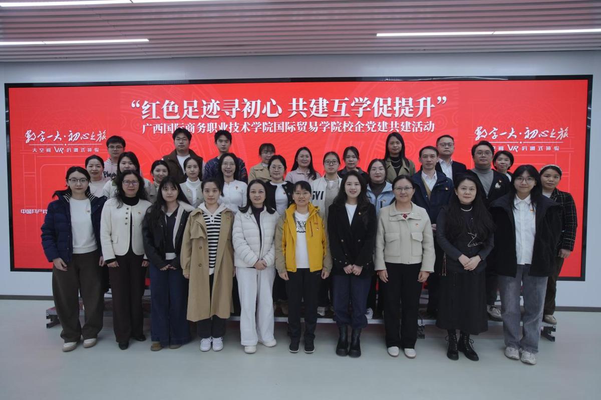 为深入贯彻落实关于加强新兴领域党建工作的重要精神,进一步加强校企合作,提升双方党组织的凝聚力与影响力,1月20日,国际贸易学院教工党支部、学生党支部与广西启迪创新跨境电子商务有限公司党支部前往茜英5G-A沉浸式大空间开展主题为“红色足迹寻初心,共建互学促提升”的校企党建共建活动。国际...