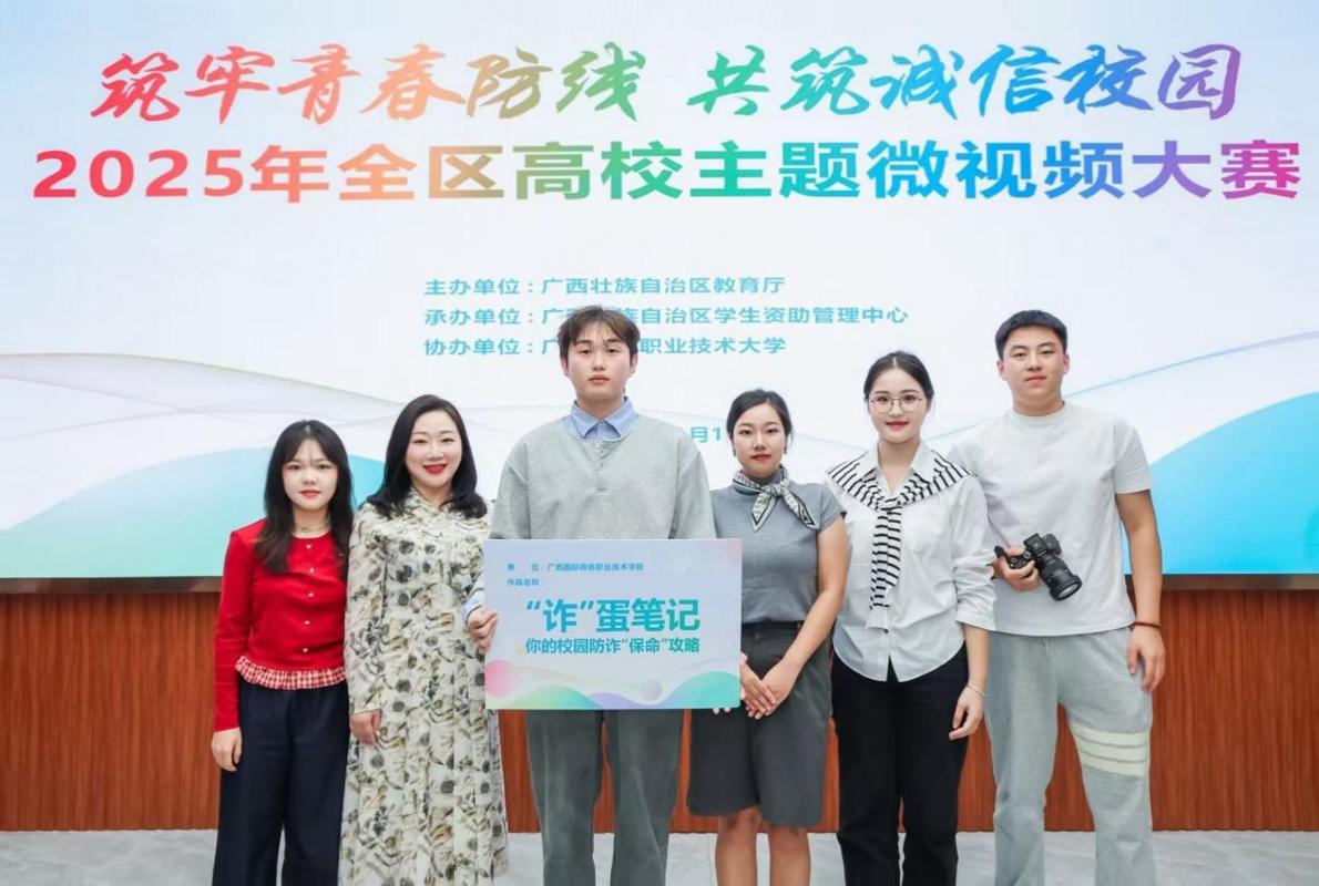 近日,由广西壮族自治区教育厅主办、广西壮族自治区学生资助管理中心承办的2025年全区高校“筑牢青春防线,共筑诚信校园”主题微视频比赛决赛圆满落幕。我校选送作品《“诈”蛋笔记:你的校园防诈“保命”攻略》凭借生动的剧情、实用的反诈知识和鲜明的教育意义,从全区89所高校的激烈竞争中脱颖而...