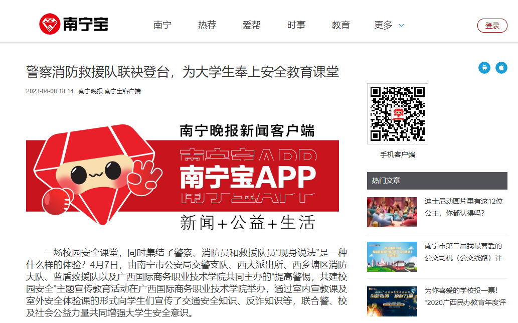 南宁新闻综合频道、南宁晚报报道我校安全普法主题宣传教育活动: