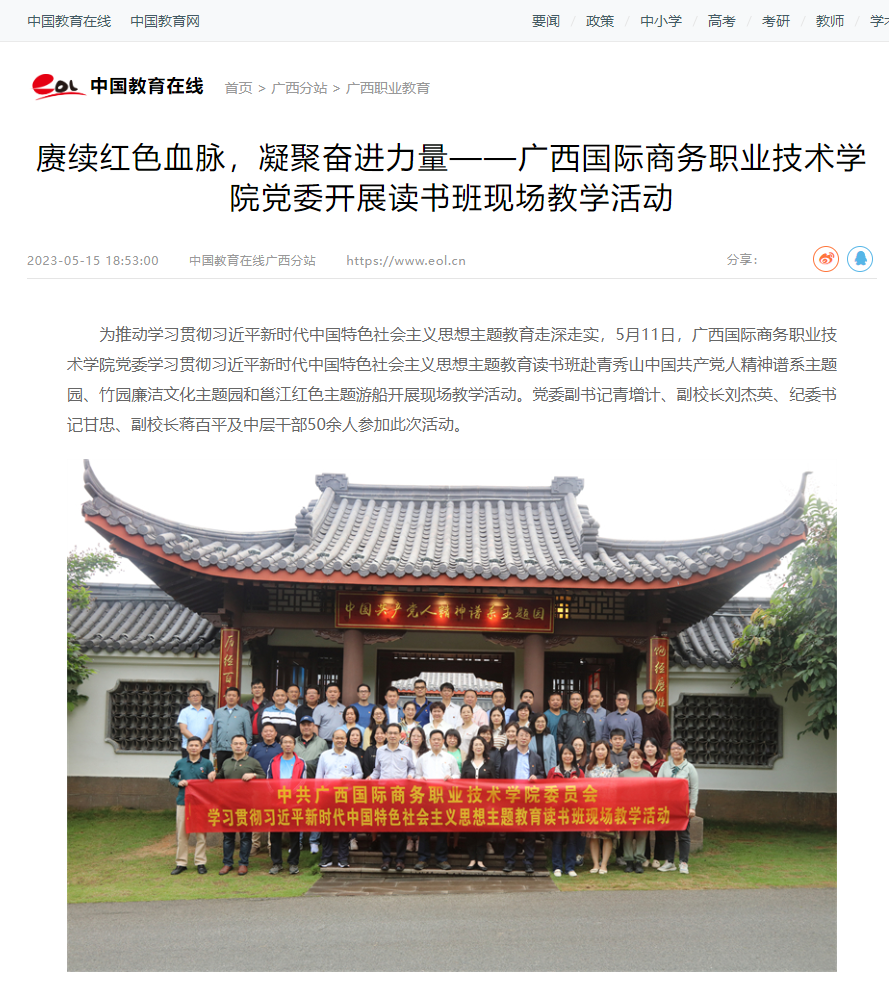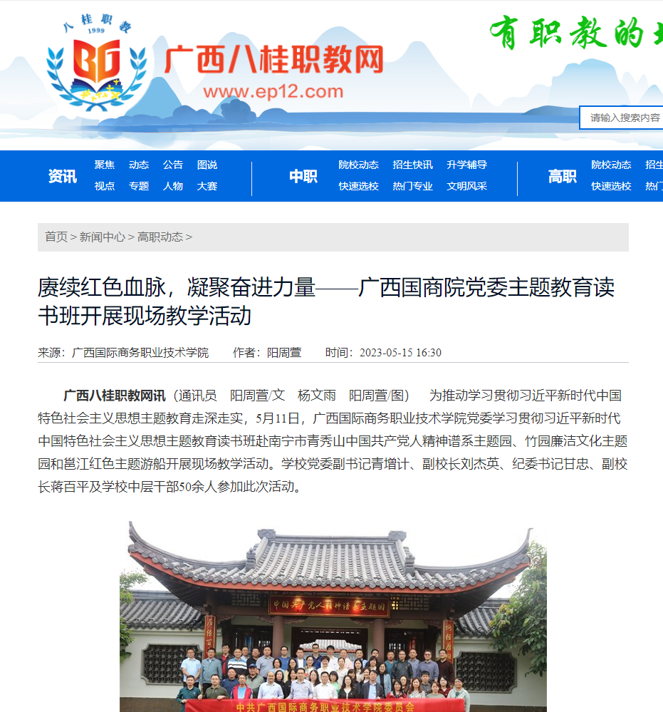 学习强国、中国教育在线、广西八桂职教网报道我校党委开展读书班现场教学活动。