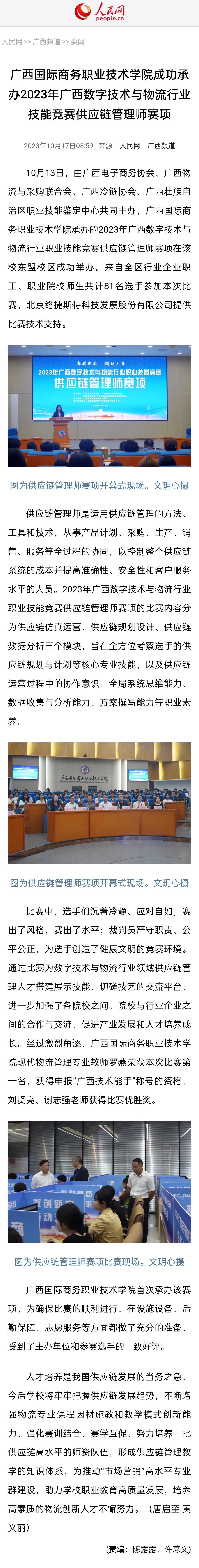 【人民网】广西国际商务职业技术学院成功承办2023年广西数字技术与物流行业技能竞赛供应链管理师赛项