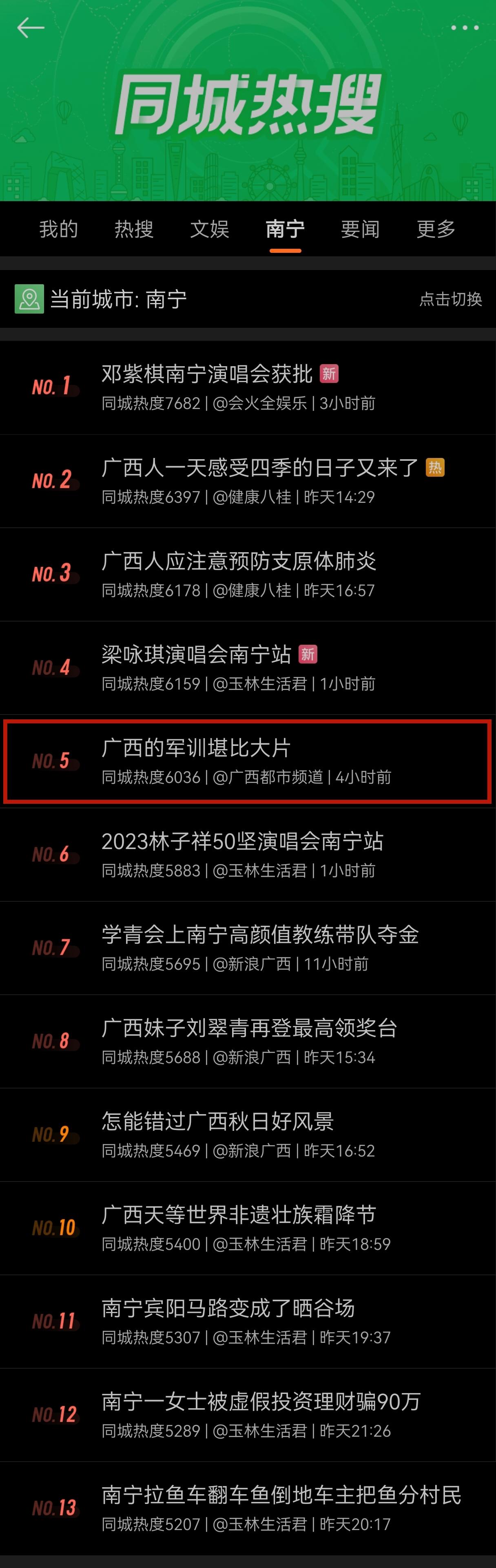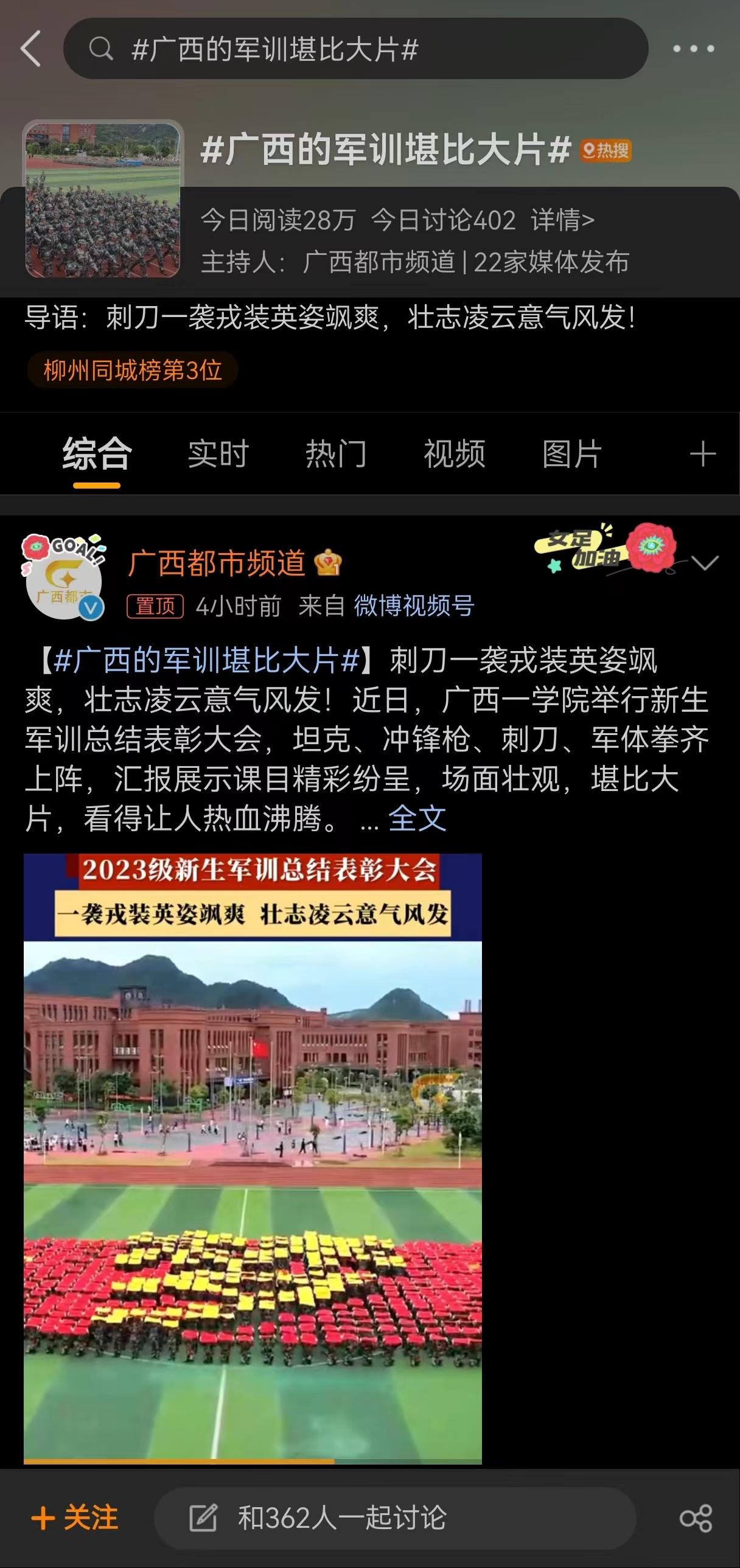 【微博热搜】我校东盟军训汇演登上微博同城热搜