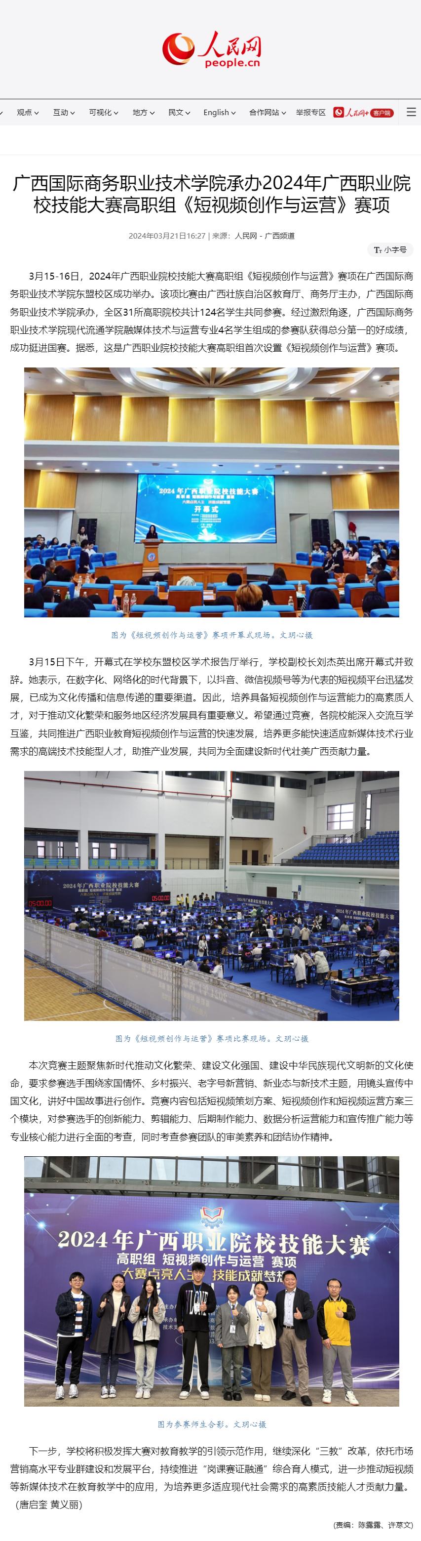 【人民网】广西国际商务职业技术学院承办2024年广西职业院校技能大赛高职组《短视频创作与运营》赛项