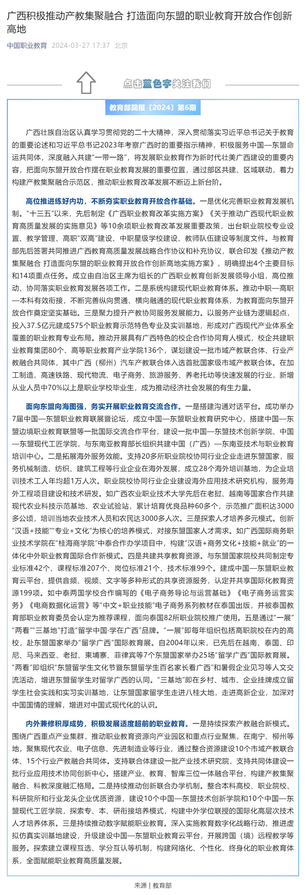 【中国职业教育】广西积极推动产教集聚融合 打造面向东盟的职业教育开放合作创新高地