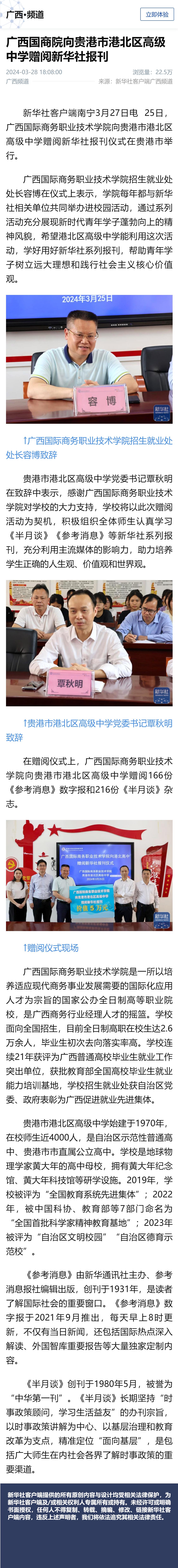 【新华社】广西国商院向贵港市港北区高级中学赠阅新华社报刊