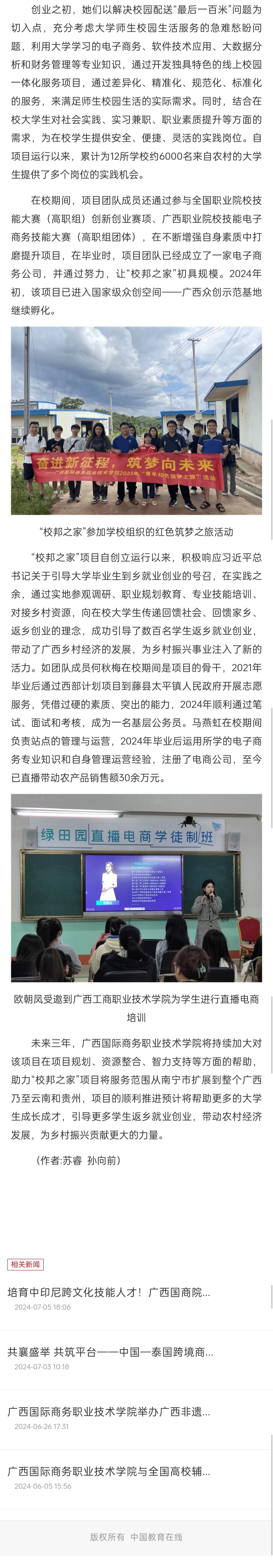 【中国教育在线】广西国际商务职业技术学院大学生创业项目“校邦之家”:服务乡村振兴 助力大学生返乡创业就业