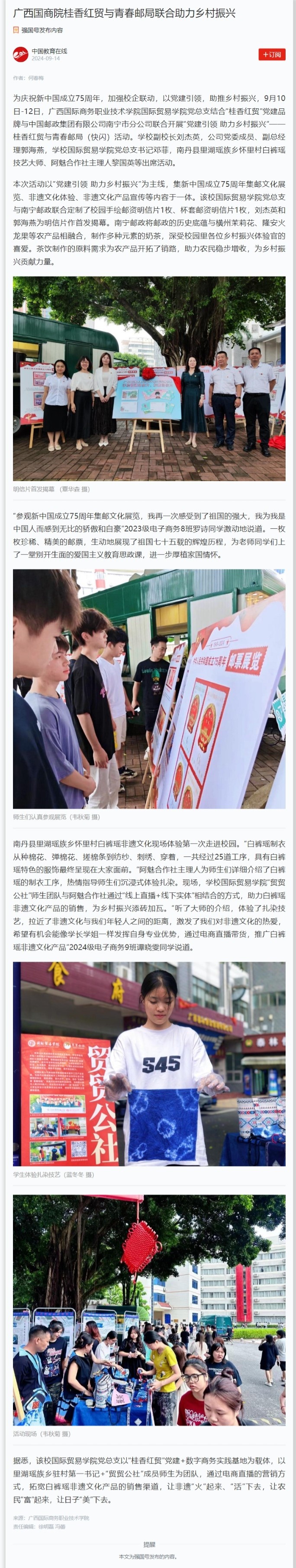 【学习强国】广西国商院桂香红贸与青春邮局联合助力乡村振兴