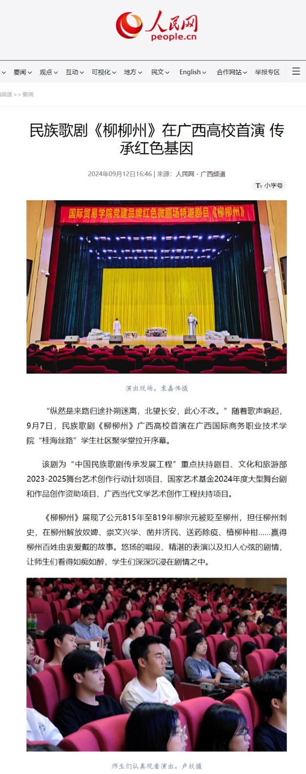 【人民网】民族歌剧《柳柳州》在广西高校首演传承红色基因