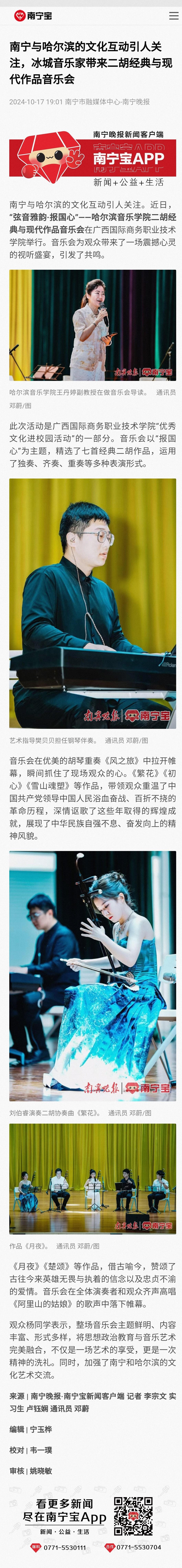 【南宁晚报】南宁与哈尔滨的文化互动引人关注,冰城音乐家带来二胡经典与现代作品音乐会