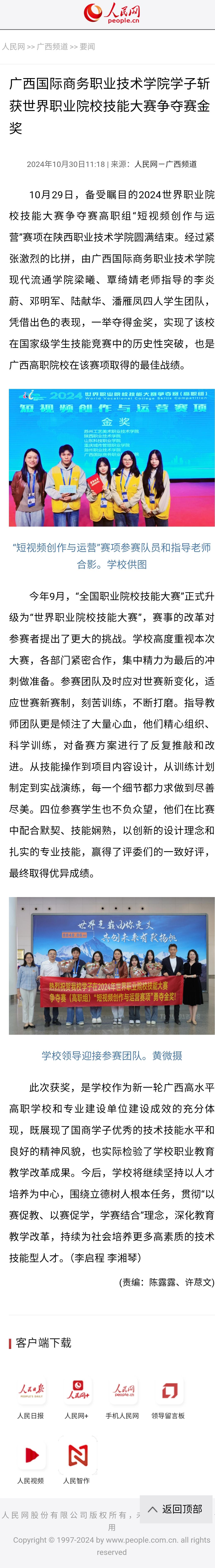 【人民网】广西国际商务职业技术学院学子斩获世界职业院校技能大赛争夺赛金奖