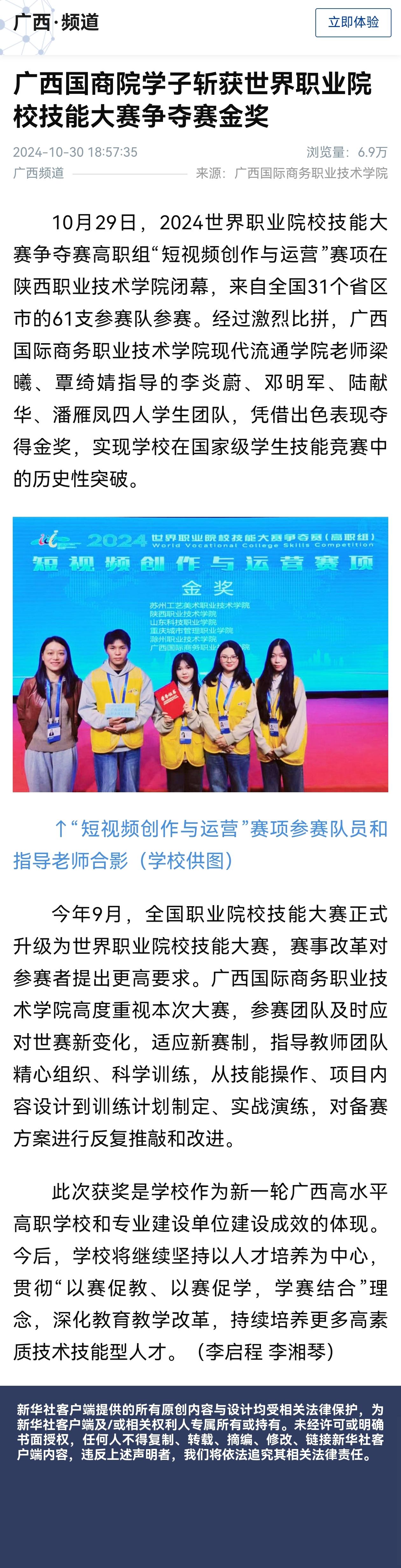 【新华社】广西国商院学子斩获世界职业院校技能大赛争夺赛金奖