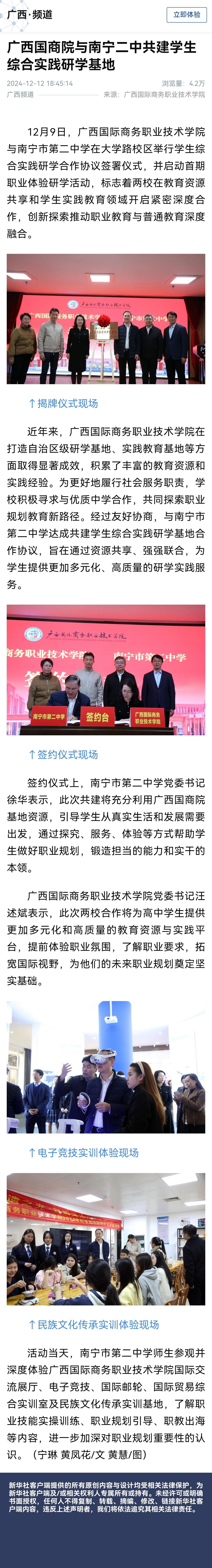 【广西八桂职教网】广西国商院与南宁市第二中学携手共建学生综合实践研学基地