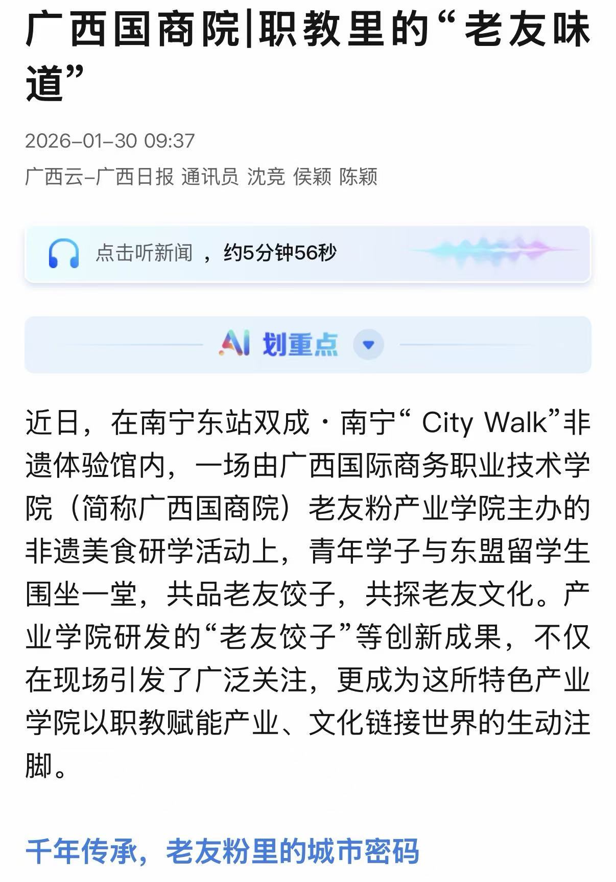 老味道焕发新活力广西国商院老友粉产业学院奏响舌尖上的职教新声