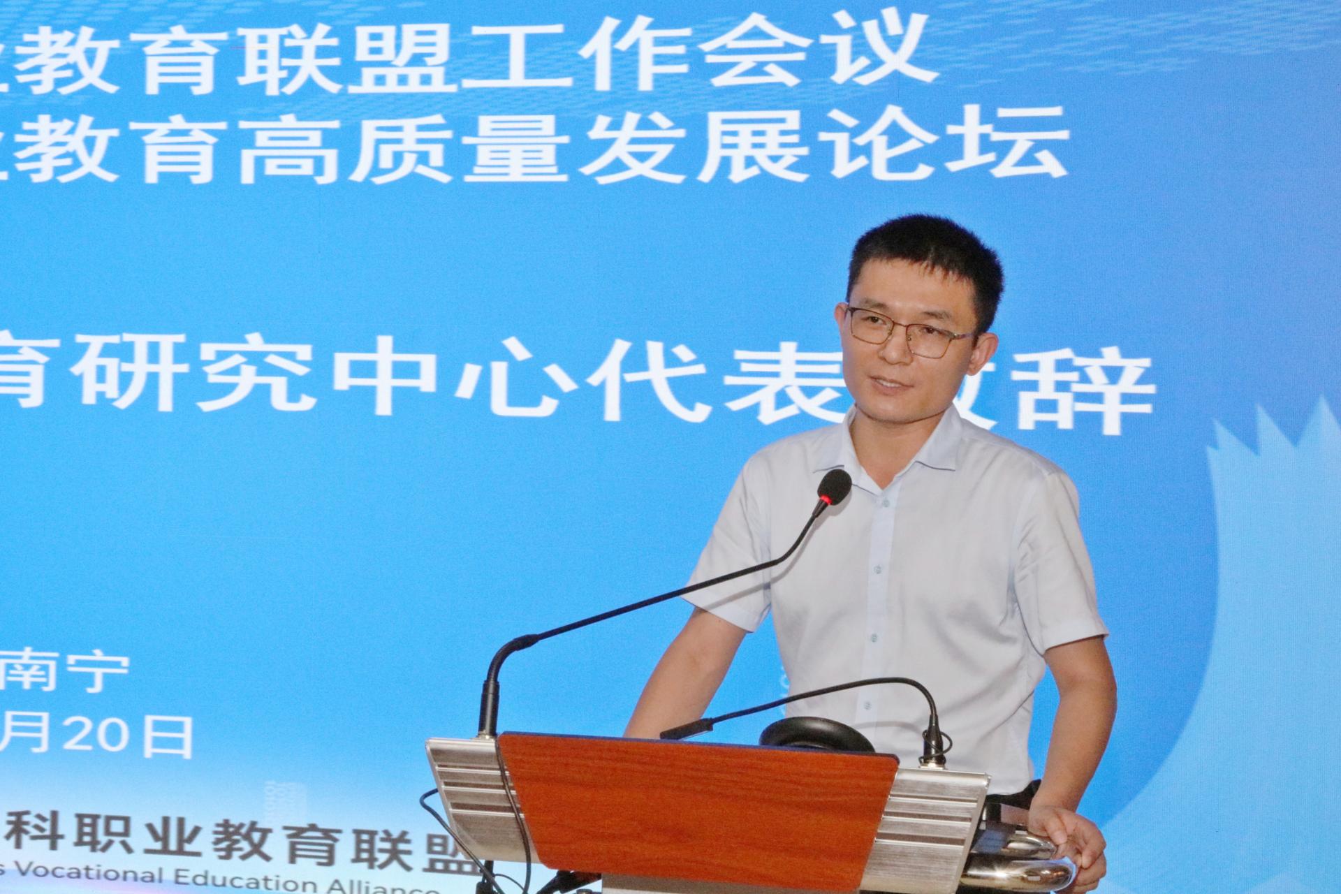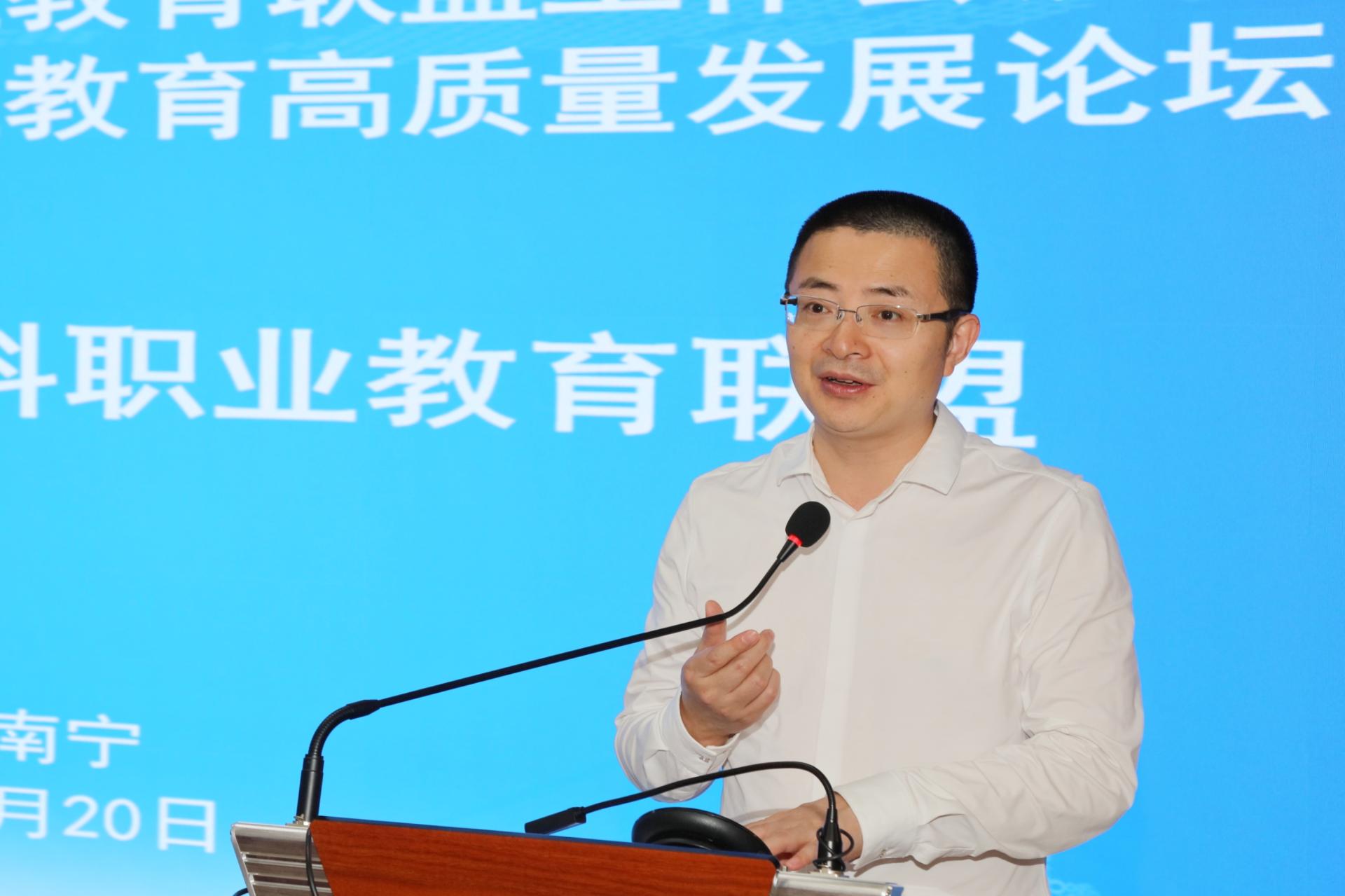 致辞环节,王国红现场作重要讲话,并代表我校向参加本次会议的线上线下所有嘉宾表示热烈的欢迎和诚挚的问候。他强调,本次会议暨论坛,是践行新修订的《职业教育法》以及贯彻落实习近平总书记关于职业教育重要指示精神的具体举措,也是紧抓中国—东盟自由贸易区3.0版建设的历史性机遇,是下好先手棋、打好主动仗的具体举措。会上他分享了我校依托中国—东盟职业教育研究中心新加坡职业教育研究所及“桂海商学院”等平台开展国际化办学的成果,并提出了四点建议:一是在中国—东盟职业教育研究中心的工作指导下,联同各成员单位,充分发挥区域优势,推动中国与东盟国家高职院校学分学历互认;二是依托中国职业院校海外分校建设平台,不断开展更多商科职业教育高质量务实交流合作;三是通过推进1+X证书制度海外试点,面向东盟开展商科职业技能培训,推动各中国职业院校与东盟中资企业联合开展人才培养。四是继续共同探讨中国—东盟商科职业教育决策咨询、课题研究、产教融合、信息共享、师资培训等问题,共同打造中国—东盟职业教育合作的新高地,促进商科职业教育成为中国—东盟职业教育的新标杆,更好地服务中国—东盟命运共同体建设。