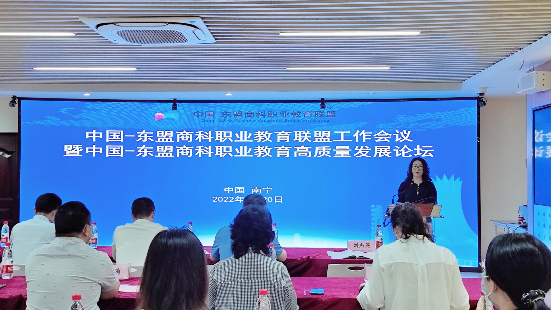 5月20日,由中国—东盟商科职业教育联盟主办,我校承办的中国—东盟商科职业教育联盟工作会议暨中国—东盟商科职业教育高质量发展论坛在我校图书馆8楼成功举办。本次会议暨论坛采取线上线下相结合方式召开,中国—东盟商科职业教育联盟的职业教育、行业企业专家齐聚一堂,针对提高质量、提升形象,落实好“三个文件”,突破“五大重点”等方面,共同畅谈商科职业教育人才培养、国际交流与合作,共同研讨如何推动中国—东盟商科职业教育高质量发展,推动建设更为紧密的中国—东盟命运共同体。