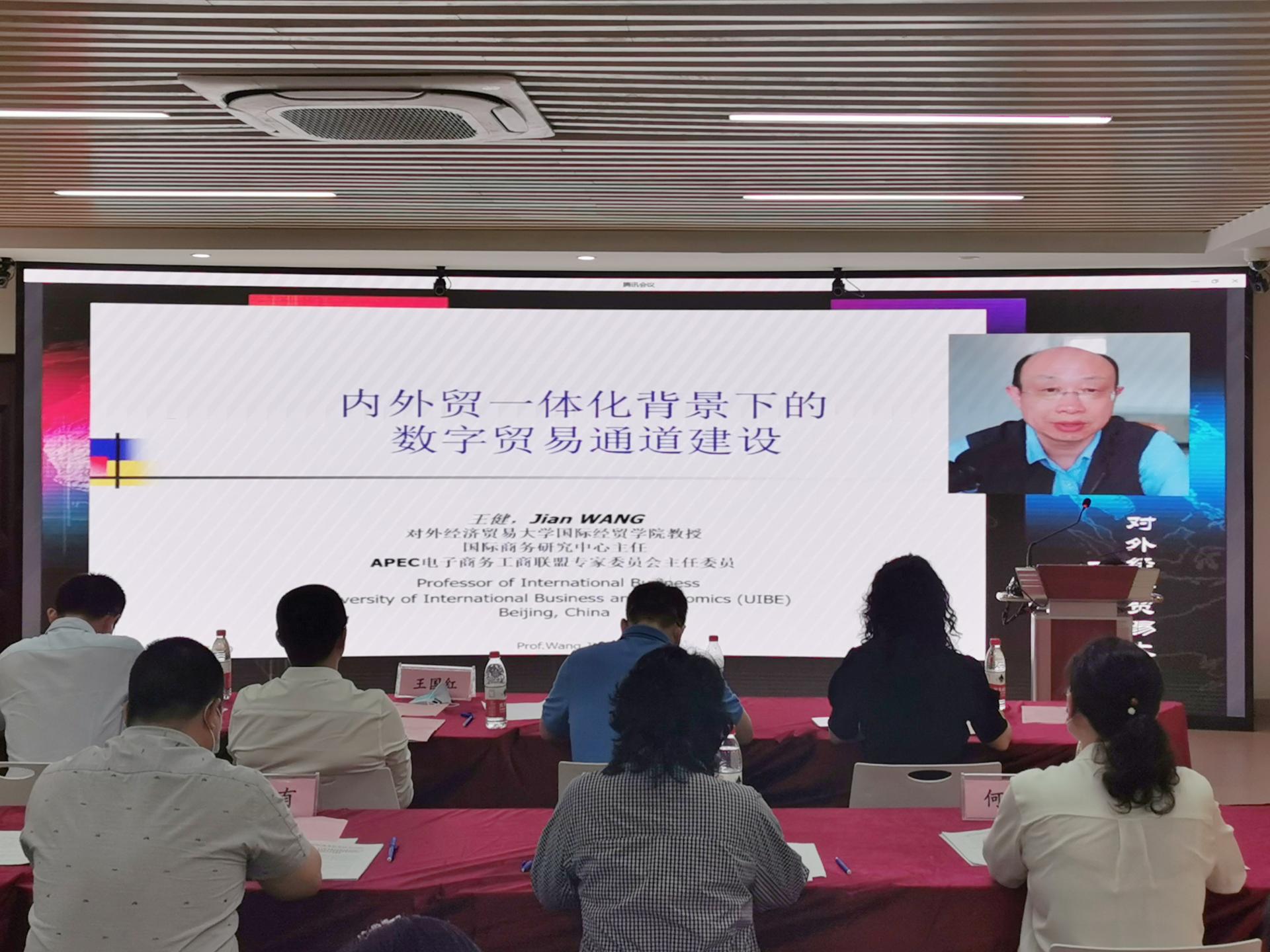 对外经济贸易大学国际经贸学院教授、博士生导师、国际商务研究中心主任、APEC跨境电子商务创新发展研究中心主任王健以《内外贸一体化背景下的数字贸易通道建设》为题作了“中国与东盟之间的数字贸易通道建设”主旨演讲,他从政府对贸易行政管理、企业的国内与国际贸易经营、国内市场与国际市场三个层次一体化剖析了内外贸一体化的内涵,指出内外贸一体化响应了国内国际双循环政策的深化改革开放的宗旨,并以四个典型案例分析了跨境电商发展的服务生态化趋势和必要性,强调要以新的视角理解“跨境电商与贸易数字化过程——网络服务生态”,并提出了从基础设施、物流通道、支付与结算、通关便利、跨境认证、数字贸易相关标准等方面加快中国与东盟数字贸易通道建设建议和高等商科人才培养的启示。