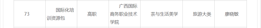 近日,在广西壮族自治区教育厅《公布2022年面向东盟国际化职业教育资源认定结果的通知》中,我校徐爱菲团队的《企业财务会计》、李向敏团队的《跨境电商运输实务》被认定为国际化课程;李凌团队的《中国与东盟国家税制比较》、梁曦团队的《数字营销技能培训》、莫恬静团队的《跨境电商短视频运营》、廖晓敏团队的《茶与生活美学》被认定为国际化培训资源包。