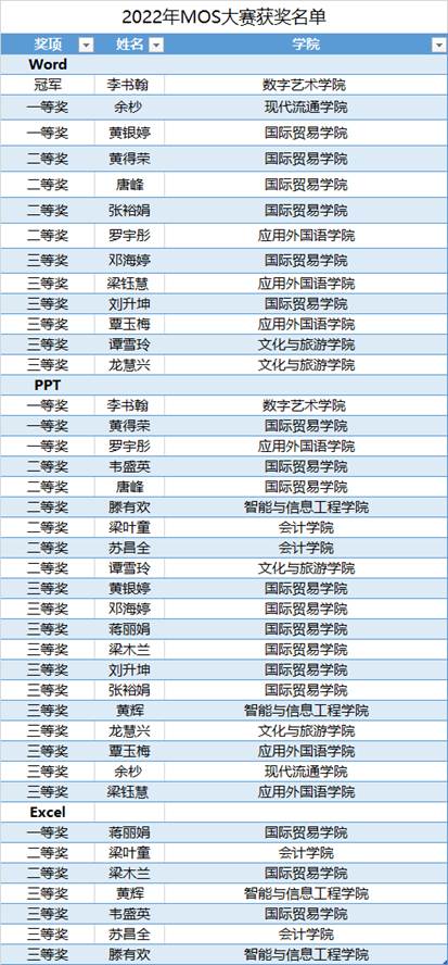 我校学生获奖名单