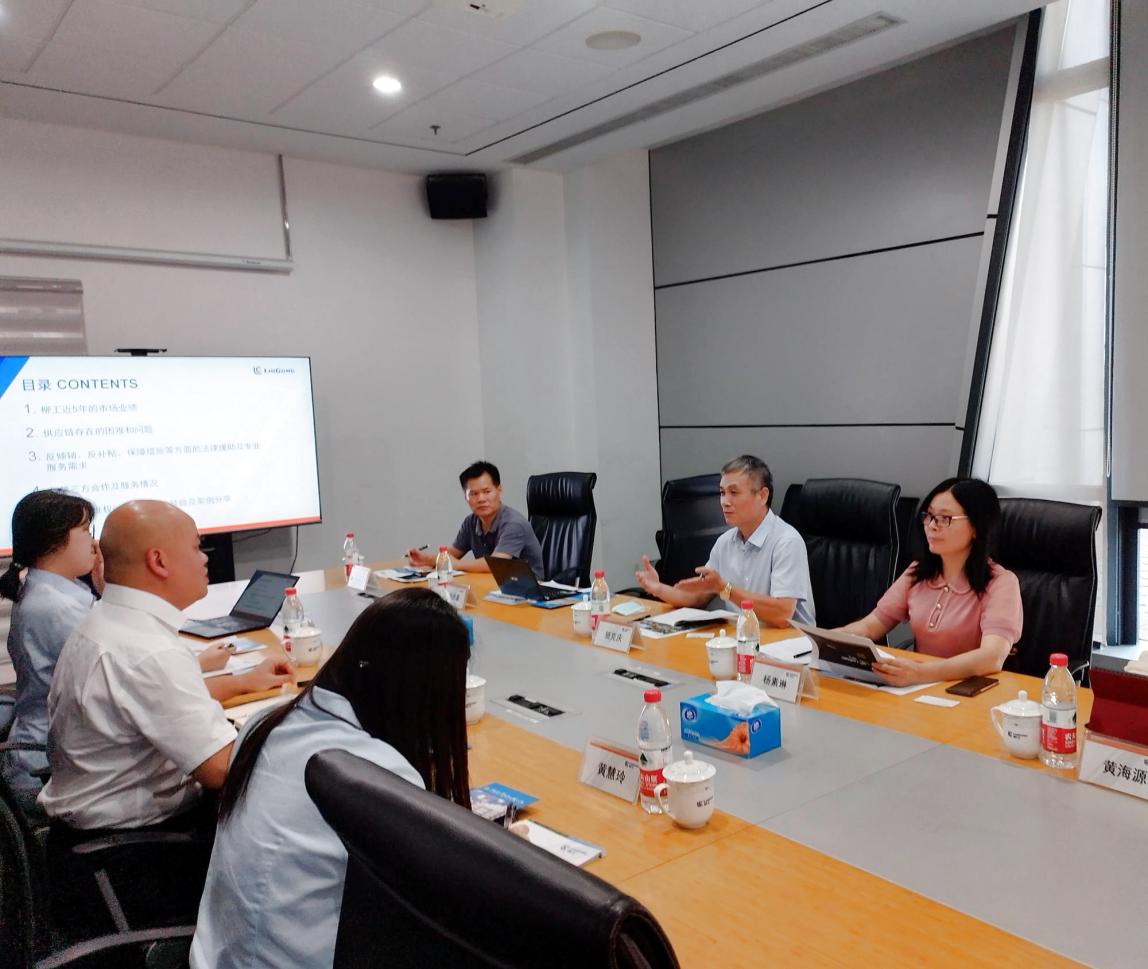 9月6日下午,调研组一行抵达柳州后,在柳州市商务局召开了一场企业座谈会。出席本次座谈会的领导包括季忠,柳州市商务局副局长韩伟,班克庆、副站长杨素琳,中国重汽集团柳州运力专用汽车有限公司业务经理曾希,柳州市双飞汽车电器配件制造有限公司业务经理刘敏,柳州源创电喷技术有限公司贸易部经理周越,柳州市得华食品有限公司海外事业部经理胡春阳,广西螺霸王食品科技有限公司外贸经理陈梓豪,广西全汇食品有限公司外贸负责人黄龙等。