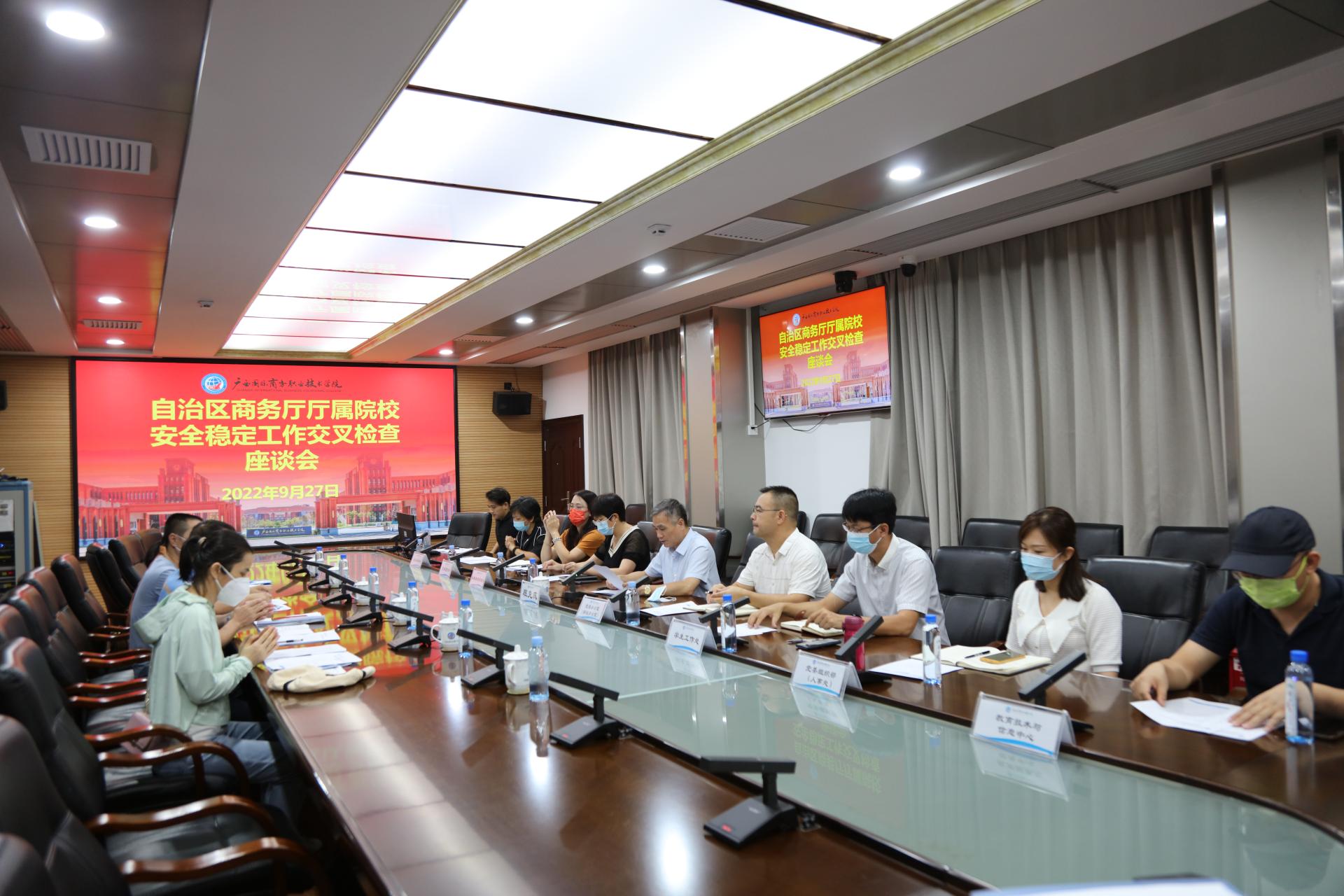 为做好国庆前后学校安全稳定工作,自治区商务厅组织开展厅属院校交叉检查。9月27日,自治区商务厅二级巡视员、人事处处长朱汉文及广西右江民族商业学校党委副书记、纪委书记、副校长马文强率队到我校开展安全稳定工作交叉检查工作。检查组通过听取汇报、查阅资料、现场查看等方式进行检查。