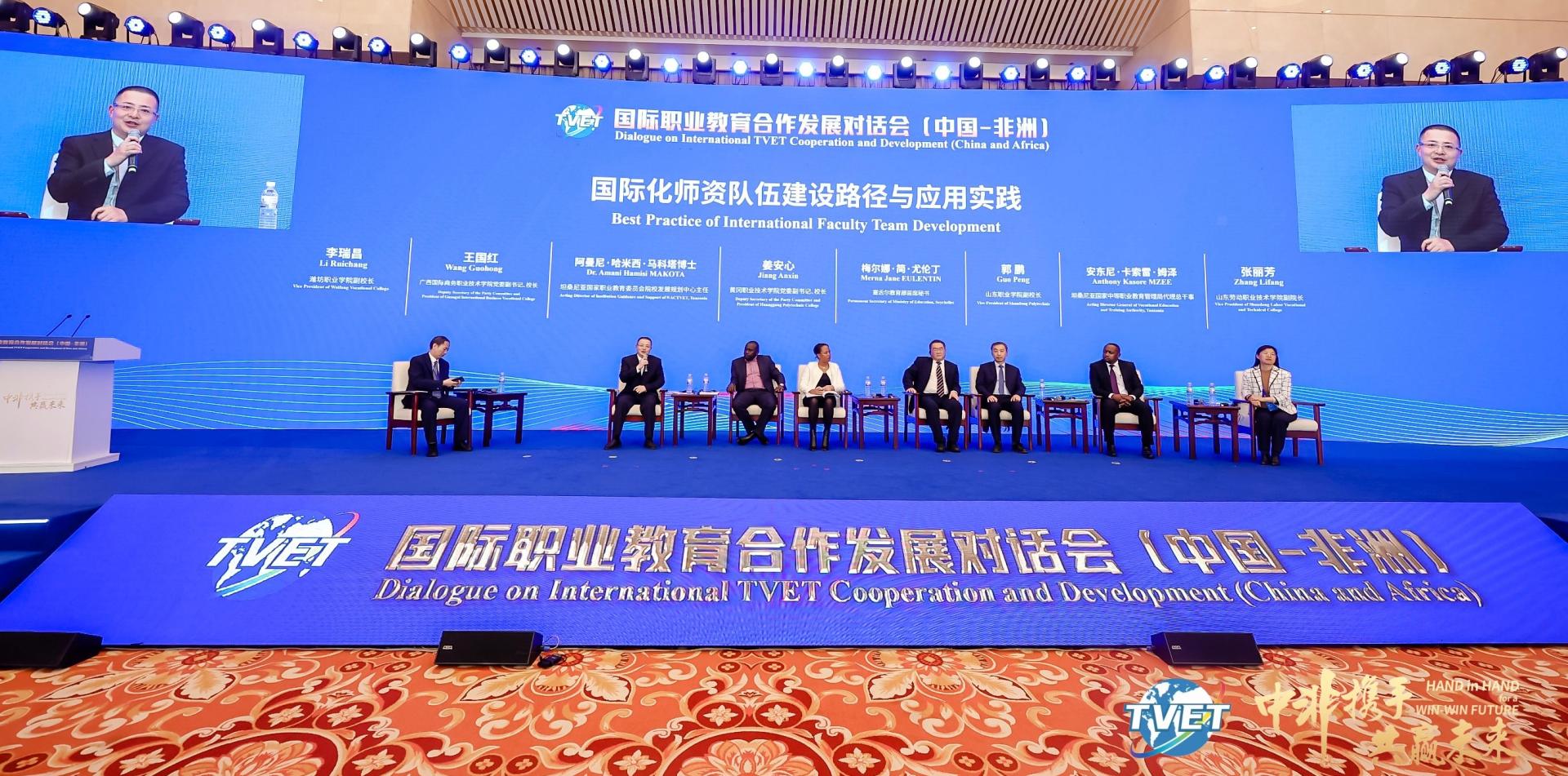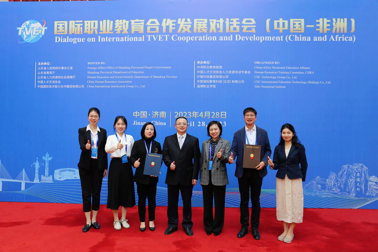 4月28日,国际职业教育合作发展对话会(中国-非洲)在济南成功举办。会议以“新机遇·新发展,中非携手·共赢未来”为主题,外交部非洲司参赞王菊、教育部国际司副司长贾鹏出席会议。来自埃塞俄比亚、塞舌尔、坦桑尼亚等国家教育部门和职业院校负责人,世界银行等国际组织代表,来自全国104所职业院校负责人近300人参加会议。我校校长王国红一行应邀参加会议。