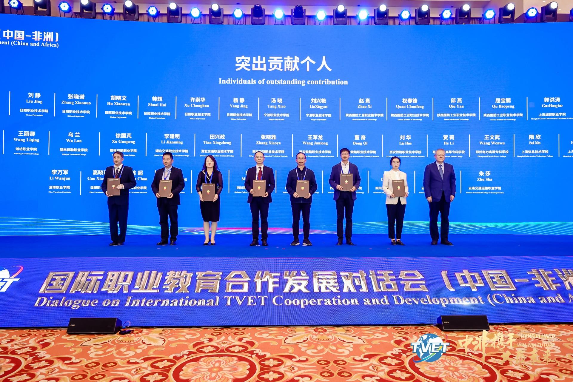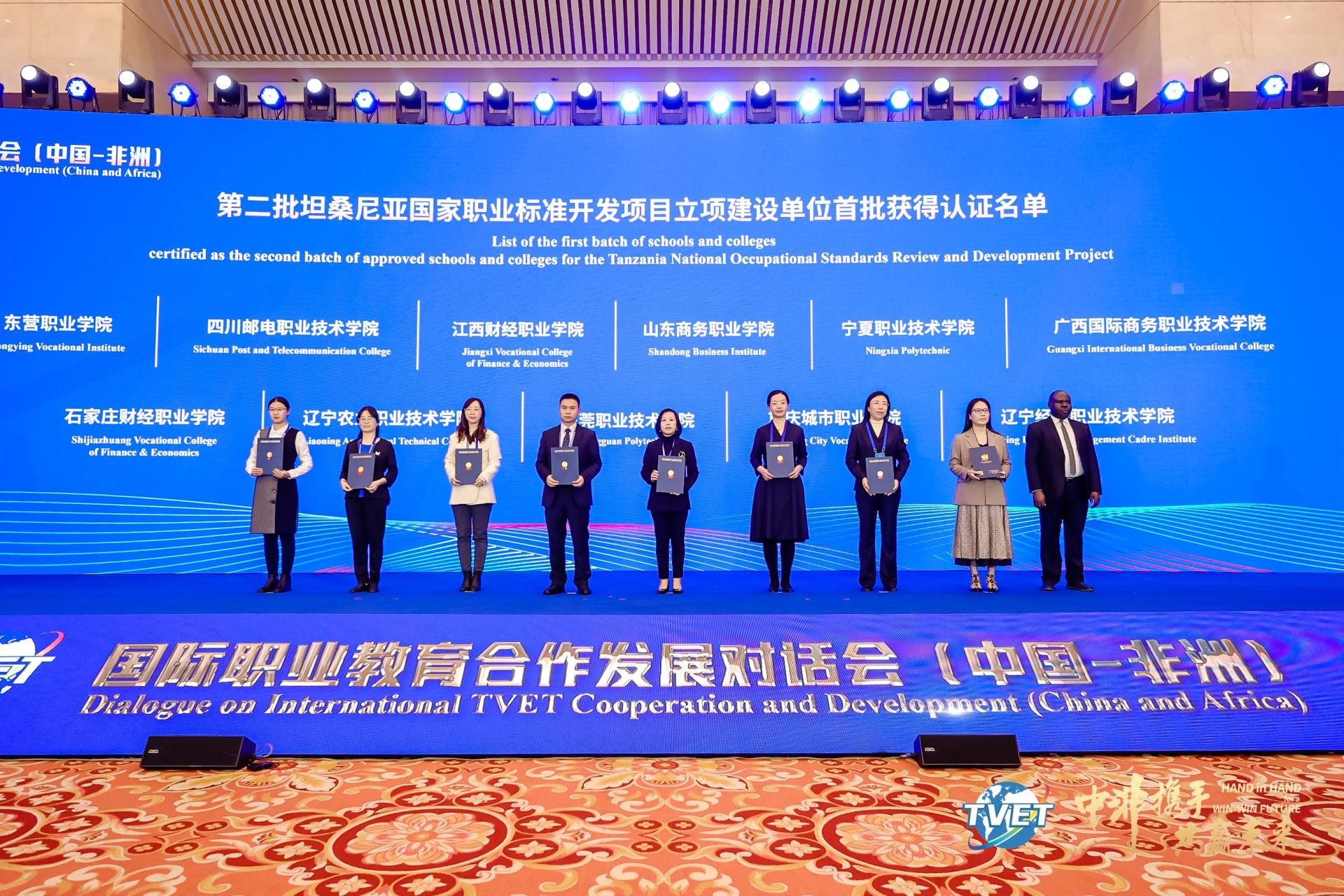 在上午的成果发布与协议签署环节,我校作为中非职业教育研究院共建单位之一见证了中非职业教育研究院共建单位授牌仪式。