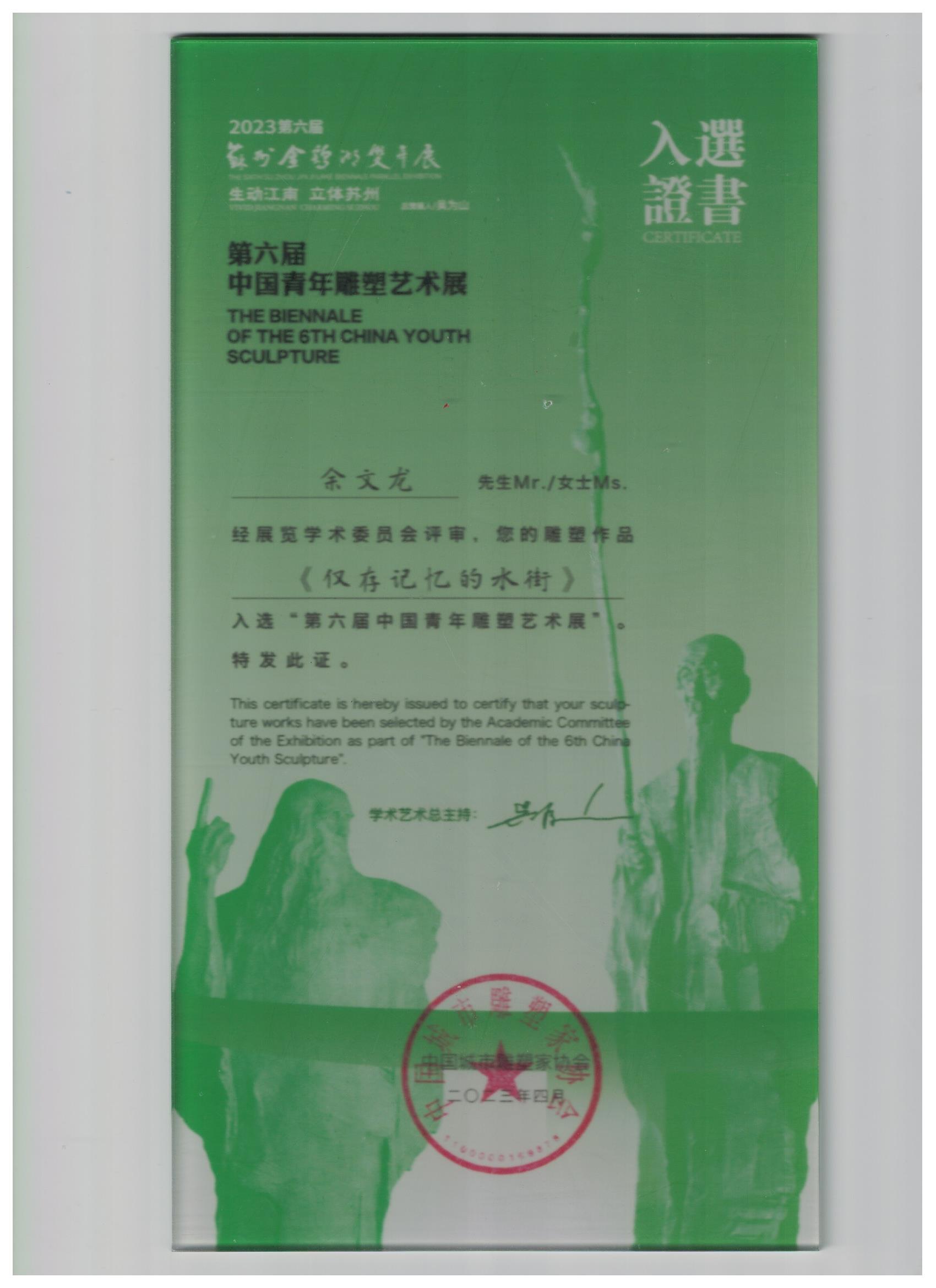 中国姿态——第六届中国雕塑展作品入选证书