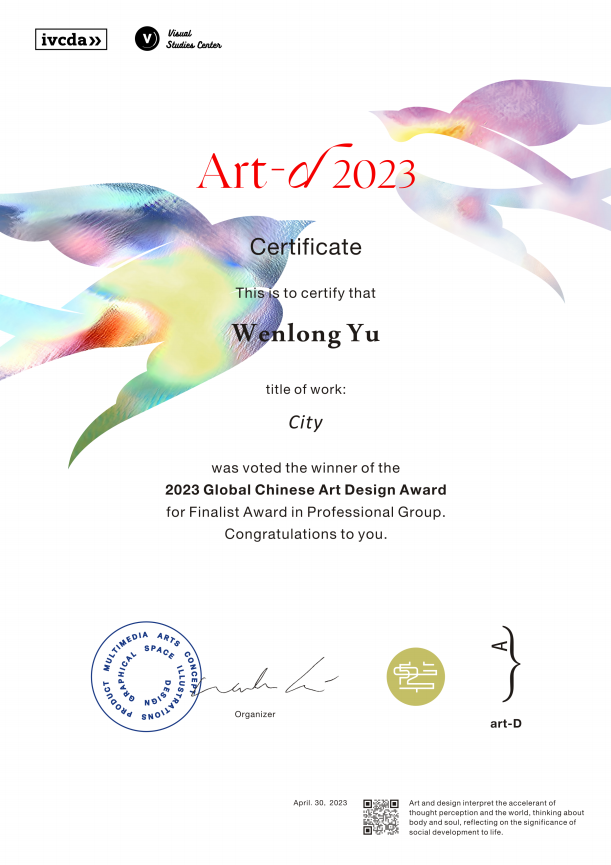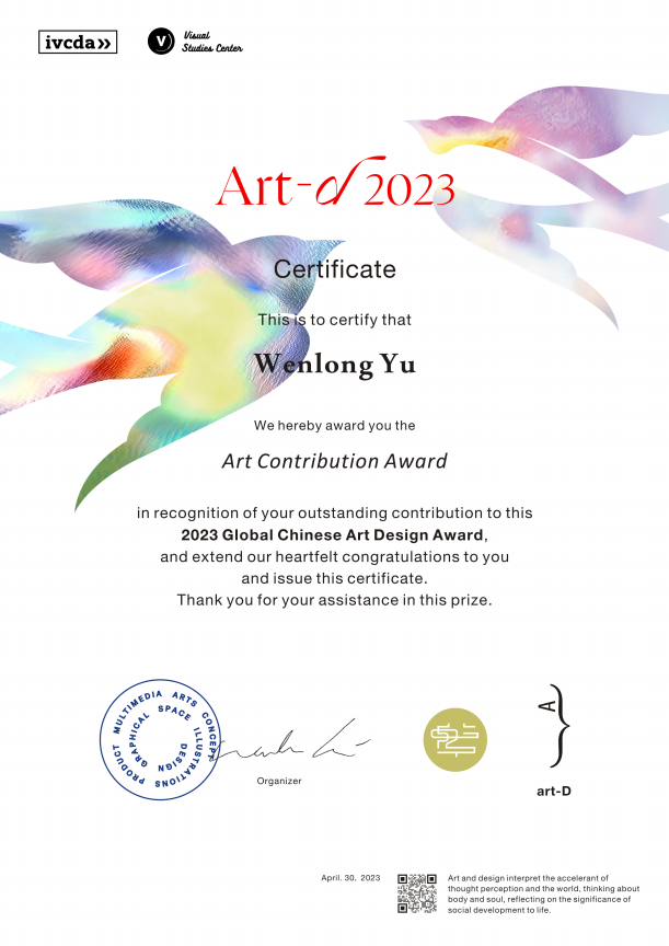 余文龙获2023年art-D全球华人艺术设计大赛艺术贡献入围奖3件