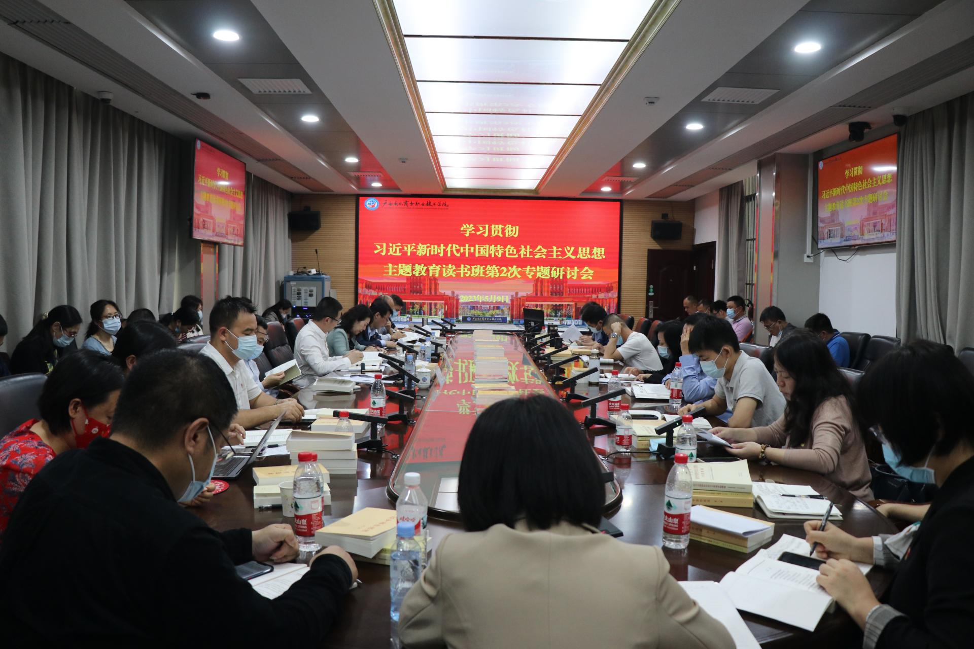 为推动学习贯彻习近平新时代中国特色社会主义思想主题教育深入开展,5月9日,我校在大学路校区开展学校党委学习贯彻习近平新时代中国特色社会主义思想主题教育读书班第2次专题学习。党委副书记、校长王国红,副校长刘杰英、纪委书记甘忠、副校长蒋百平及全体中层干部参会。会议由王国红主持。