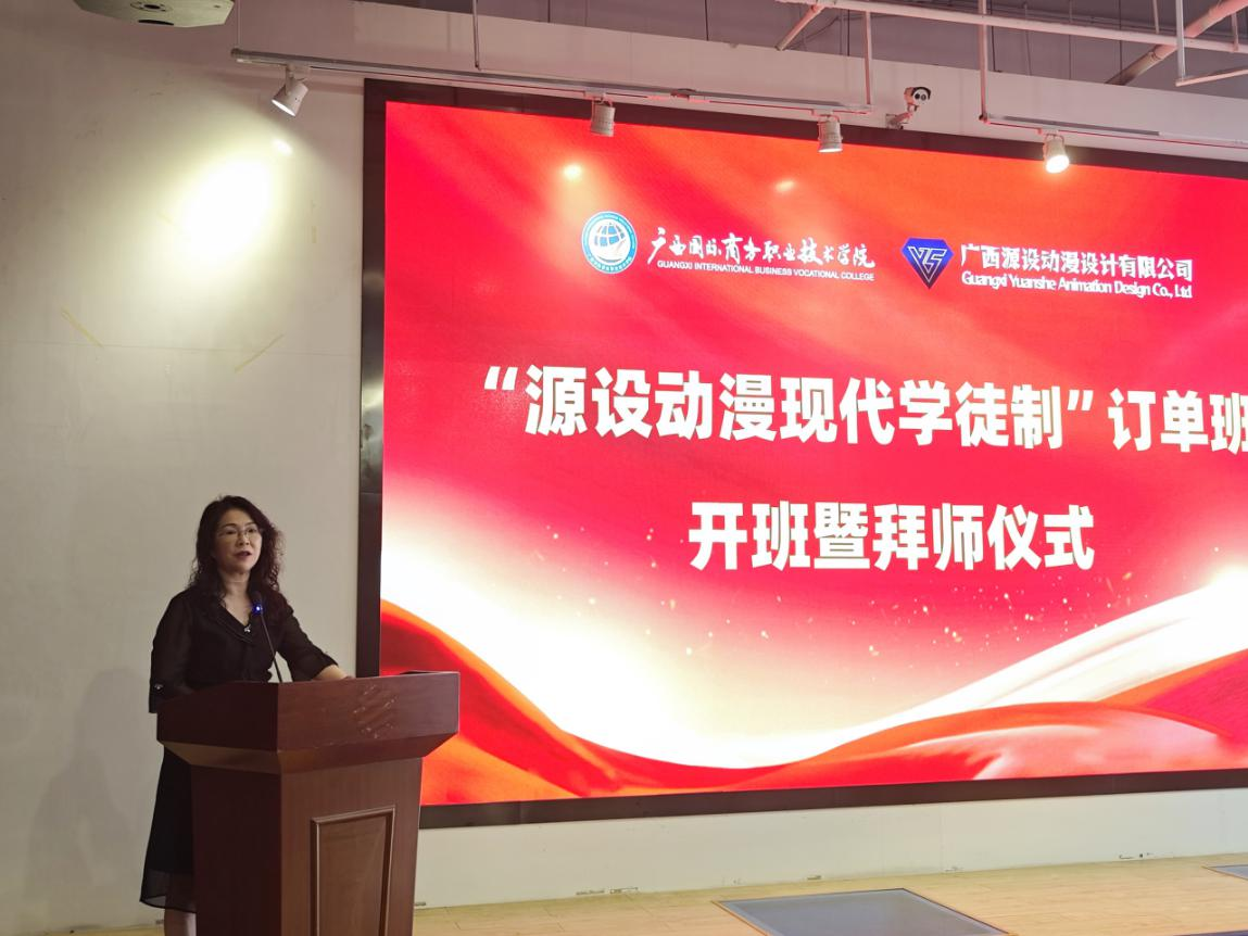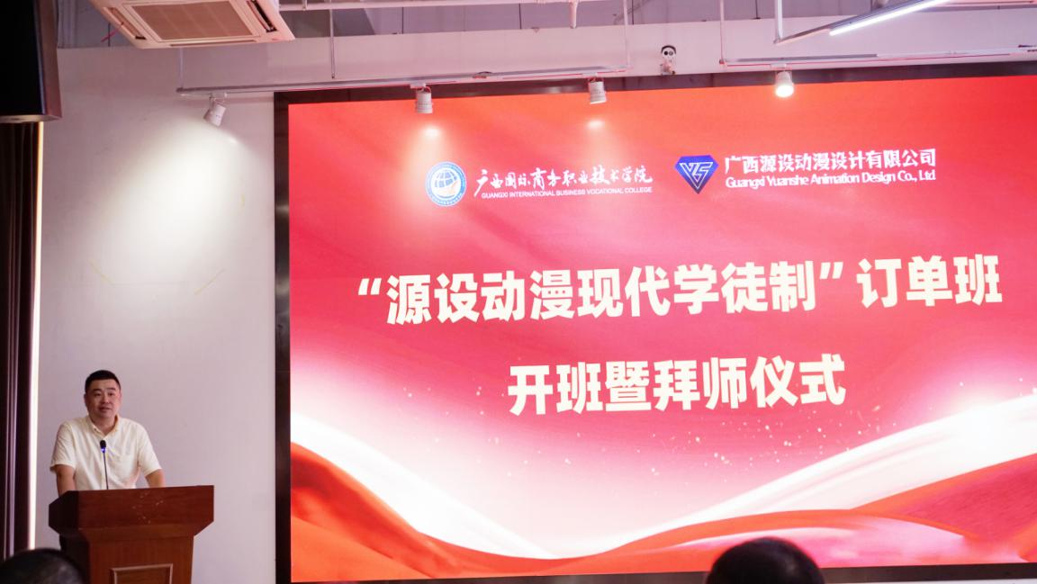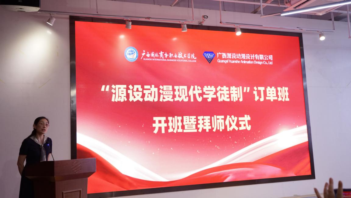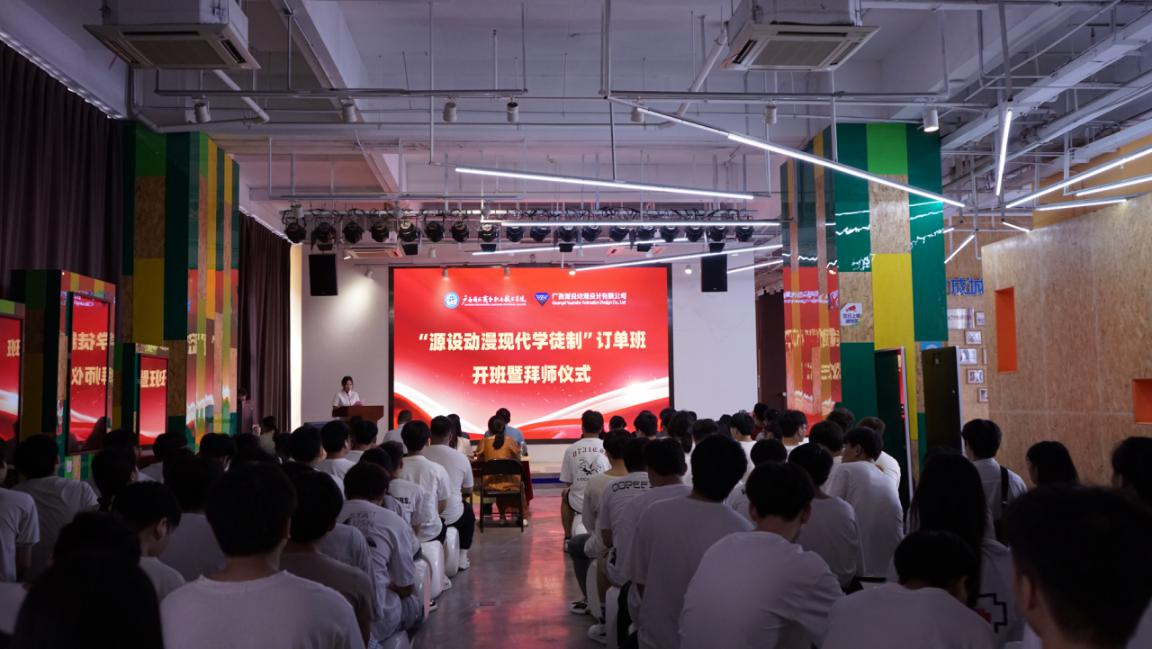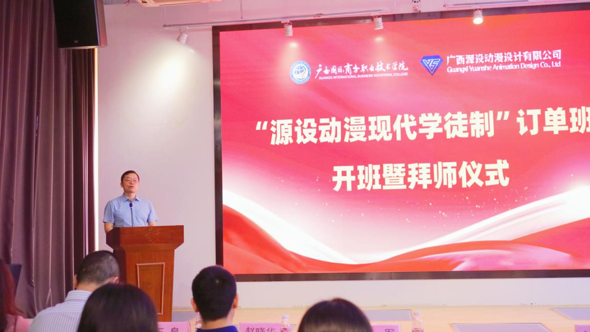6月1日上午,为进一步深化产教融合,落实数字创意产业学院建设目标,我校在南宁创客城举行“源设动漫现代学徒制”订单班开班暨拜师仪式。学校副校长刘杰英,教务科研处副处长玉泉,数字艺术学院院长曾海文,党总支副书记黄恒拾,武汉中部对外经济技术合作集团有限公司总经理李军,广西源设动漫设计有限公司总经理王明智,以及数字艺术学院100余名参与现代学徒制项目的师生代表及企业代表出席了本次活动。