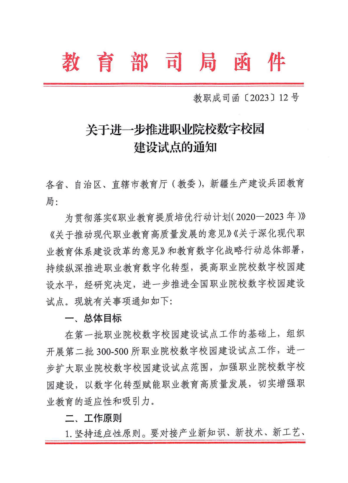 关于进一步推进职业院校数字校园建设试点的通知