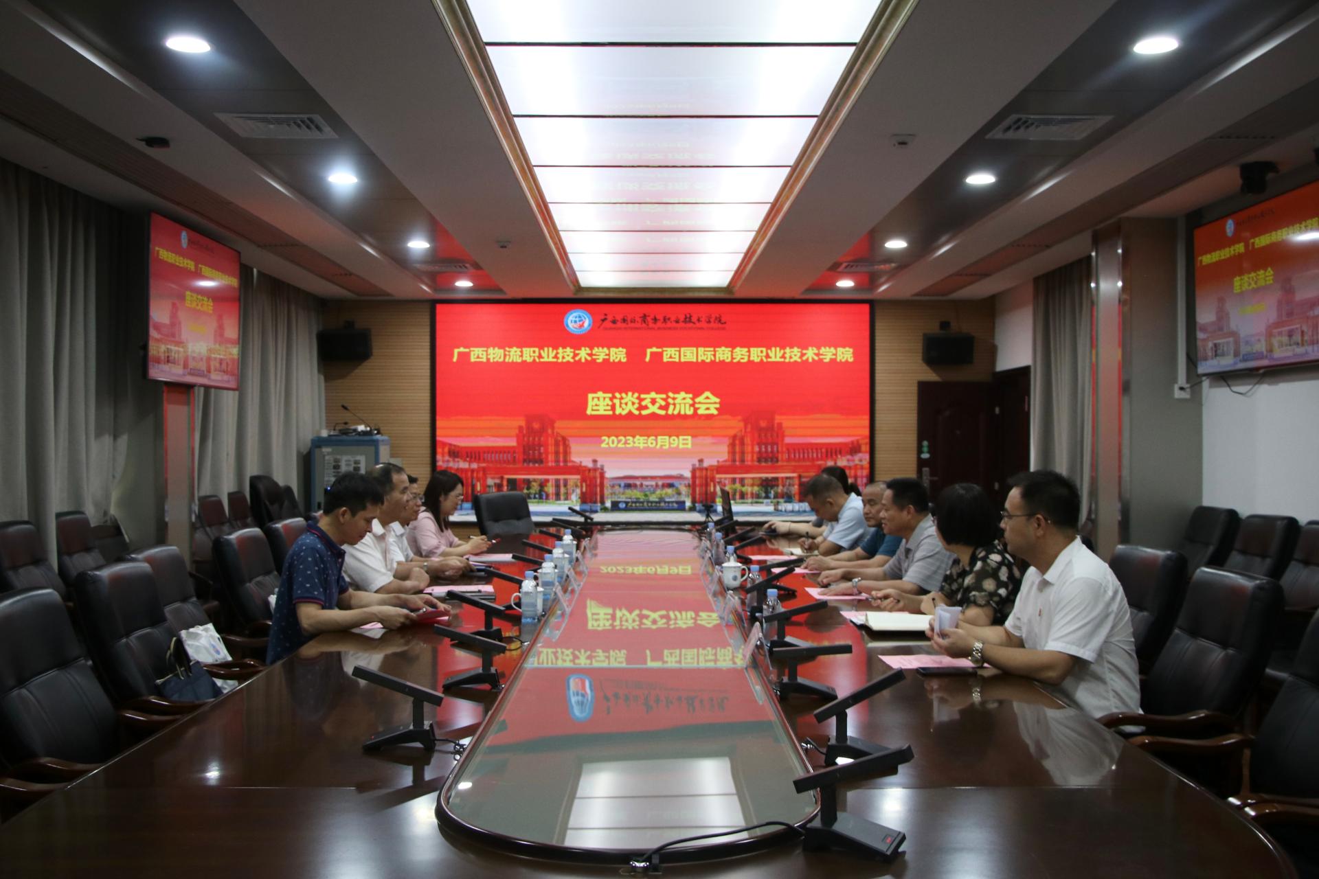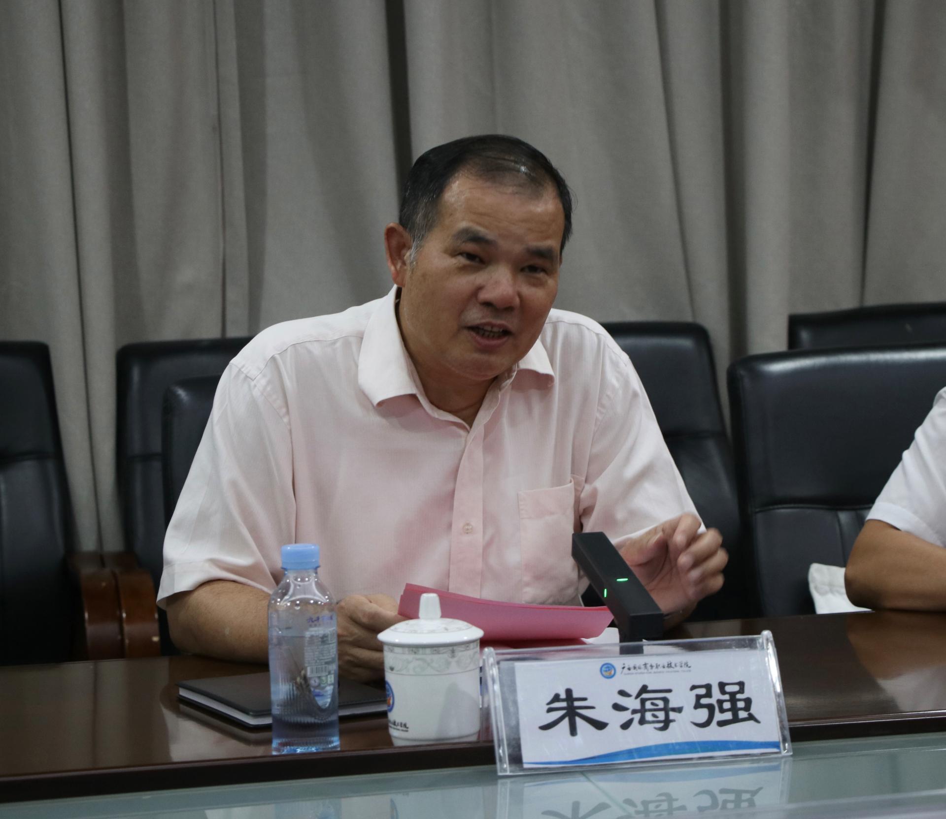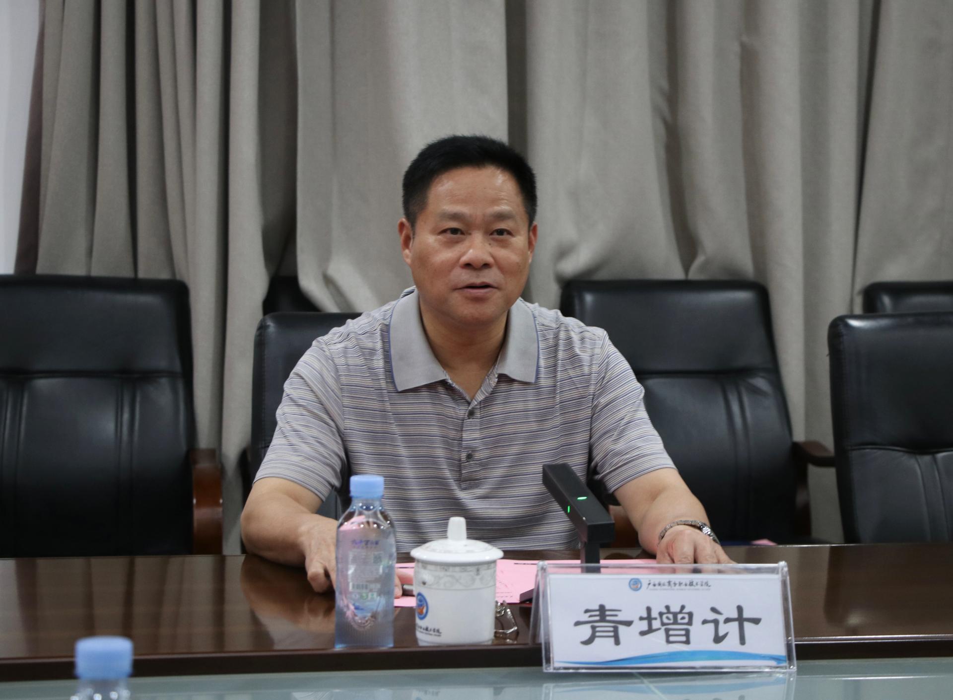 6月9日上午,广西物流职业技术学院党委副书记、院长朱海强一行4人莅临我校调研交流。学校党委副书记青增计接待了朱海强一行,并出席座谈交流会。