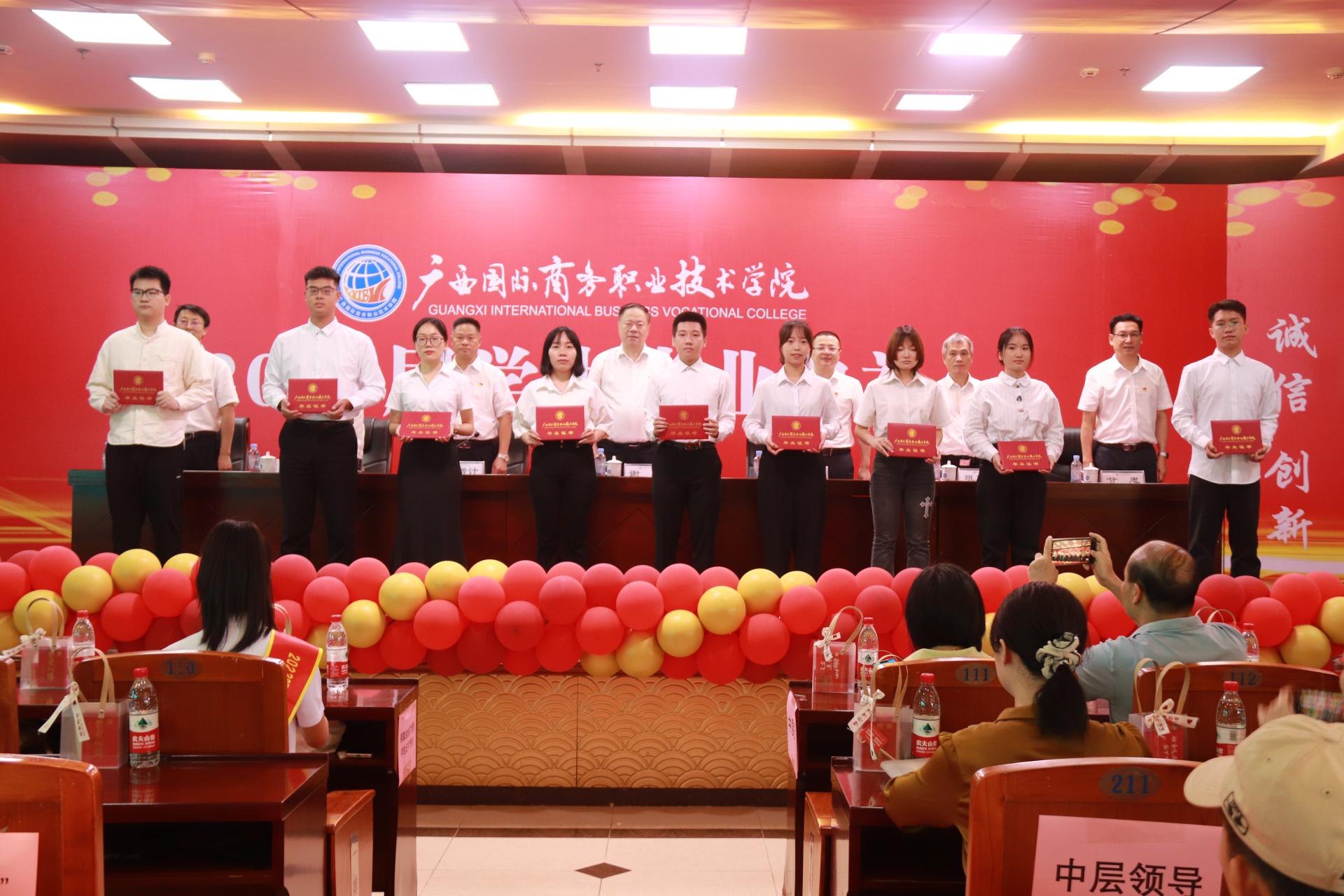 学校领导为自治区优秀毕业生代表颁发荣誉证书和纪念奖杯