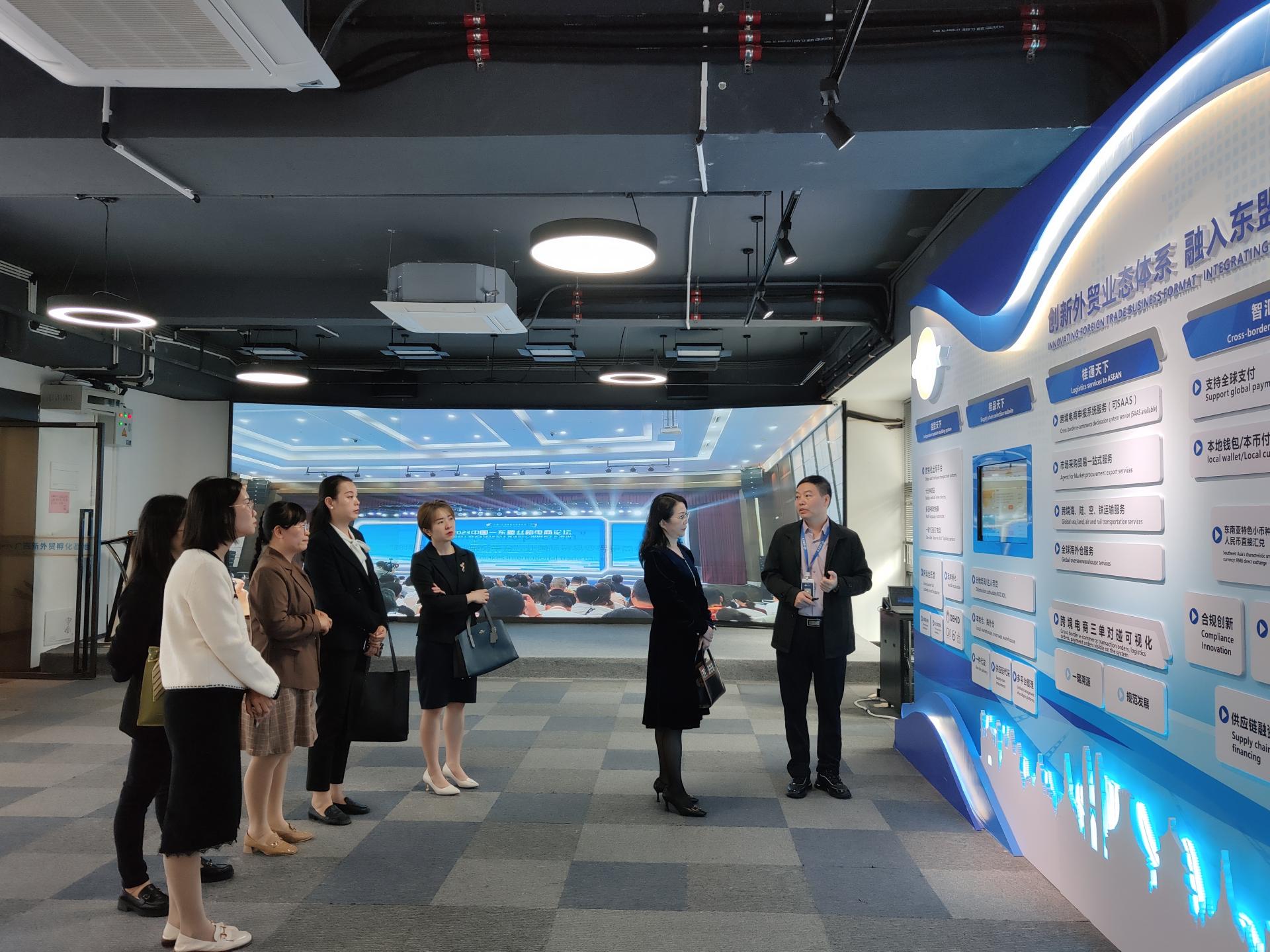 揭牌仪式前,代晓云带领大家参观了公司东盟直播基地,并详细介绍桂贸天下、桂品天下、桂通天下、智汇天下、桂贸大学等主营业务和项目情况。