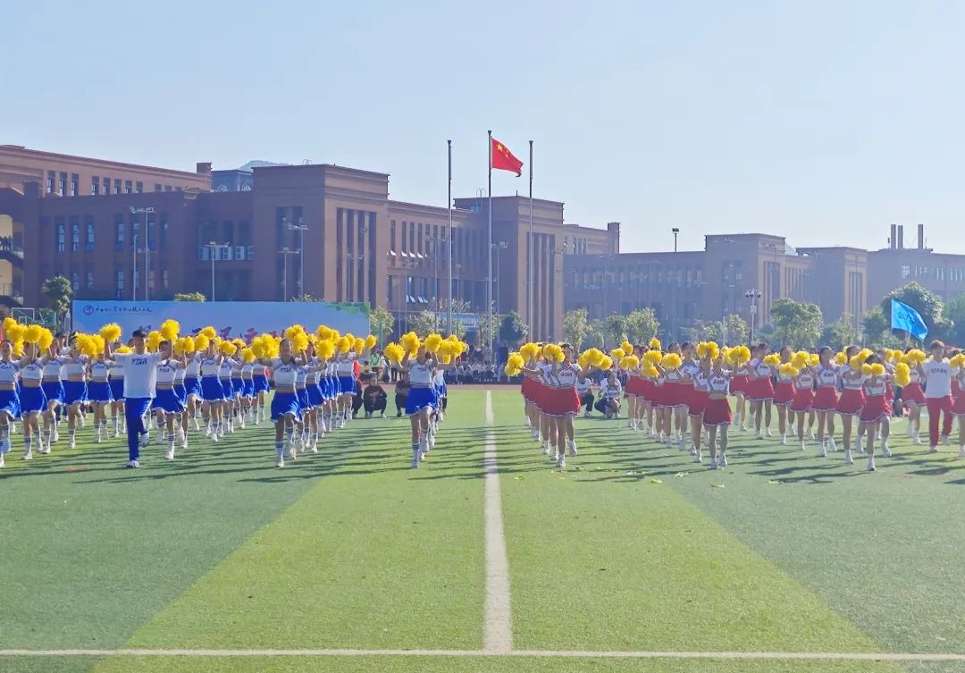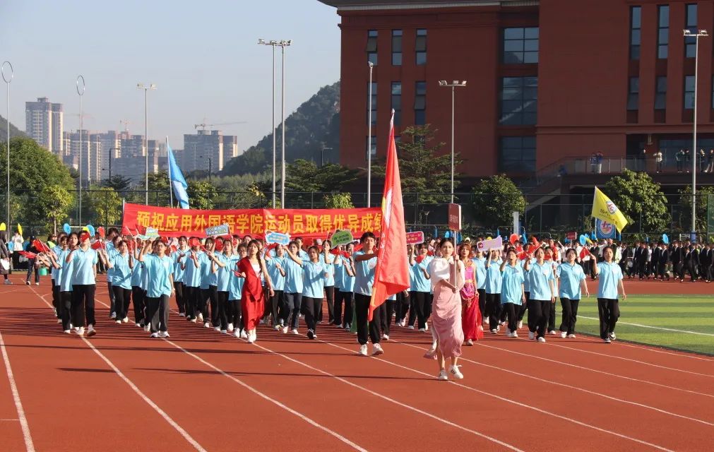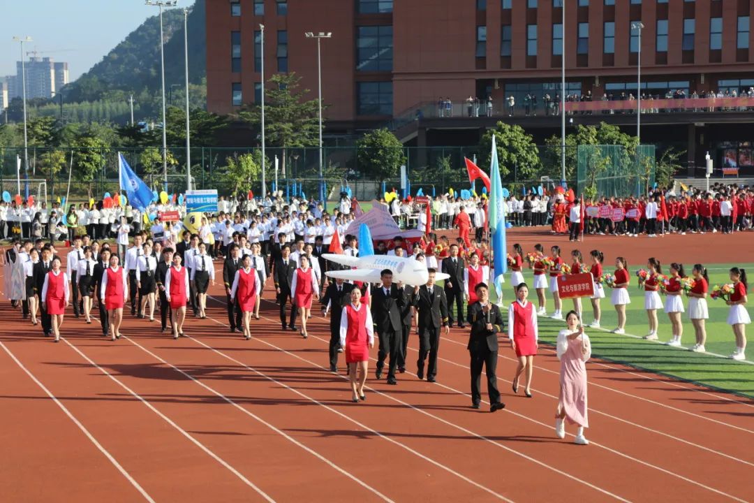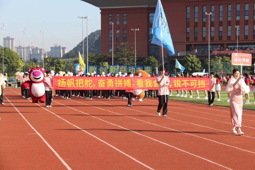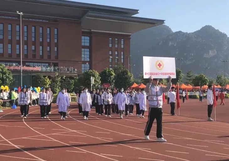 伴着激扬的旋律,国旗队、校旗队、鲜花队、红旗队、裁判员代表队、各二级学院代表队、应急救护方块队以及教职工代表队组成的17个方队依次入场,口号响亮、步履铿锵地走过主席台,各单位用有力的步伐踏出了他们的青春乐章。