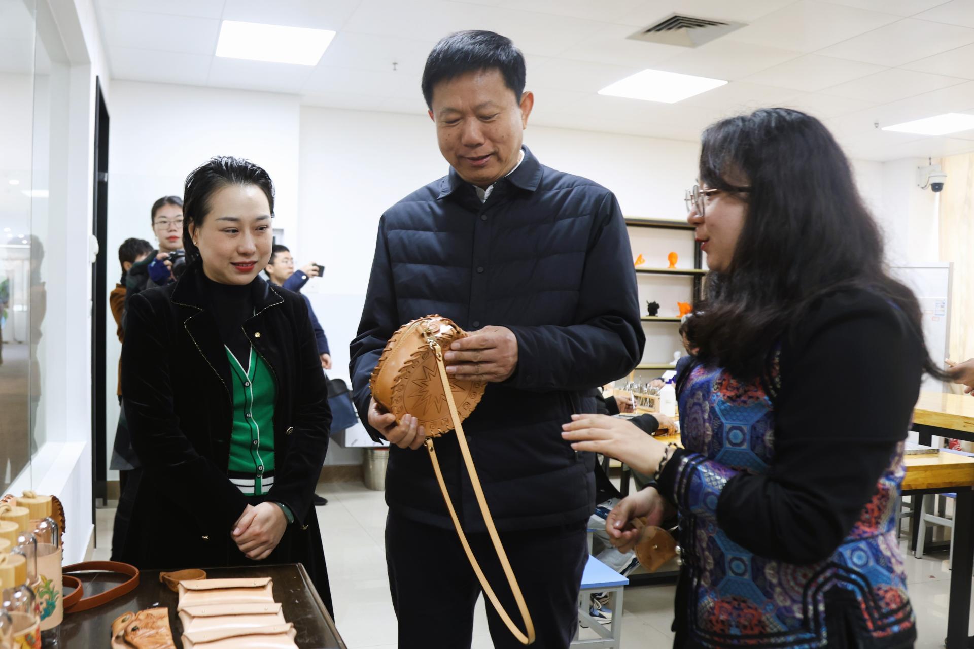 费志荣一行首先来到我校国际交流展厅,听取我校办学情况和国际化荣誉成果的汇报,详细了解学校打造的“桂海商学院”“桂海商坊”“国商标准”“留学国商院”“国商学子看世界”“援外课堂”“东盟文化周”“研学东盟”“商务学堂”“中国—东盟商科职业教育联盟”的国际化十大“国商品牌”。在我校民族文化传承创新职教基地,费志荣一行走进民族文化创新传承展厅、留学生课堂,与师生交流,了解我校积极探索民族文化的现代传承发展机制,通过以数字化支持传承创新、以国际化实现文化传播等“五化”体系,持续打造现代商务特色民族文化品牌,构建民族文化传承创新职业教育高质量发展。