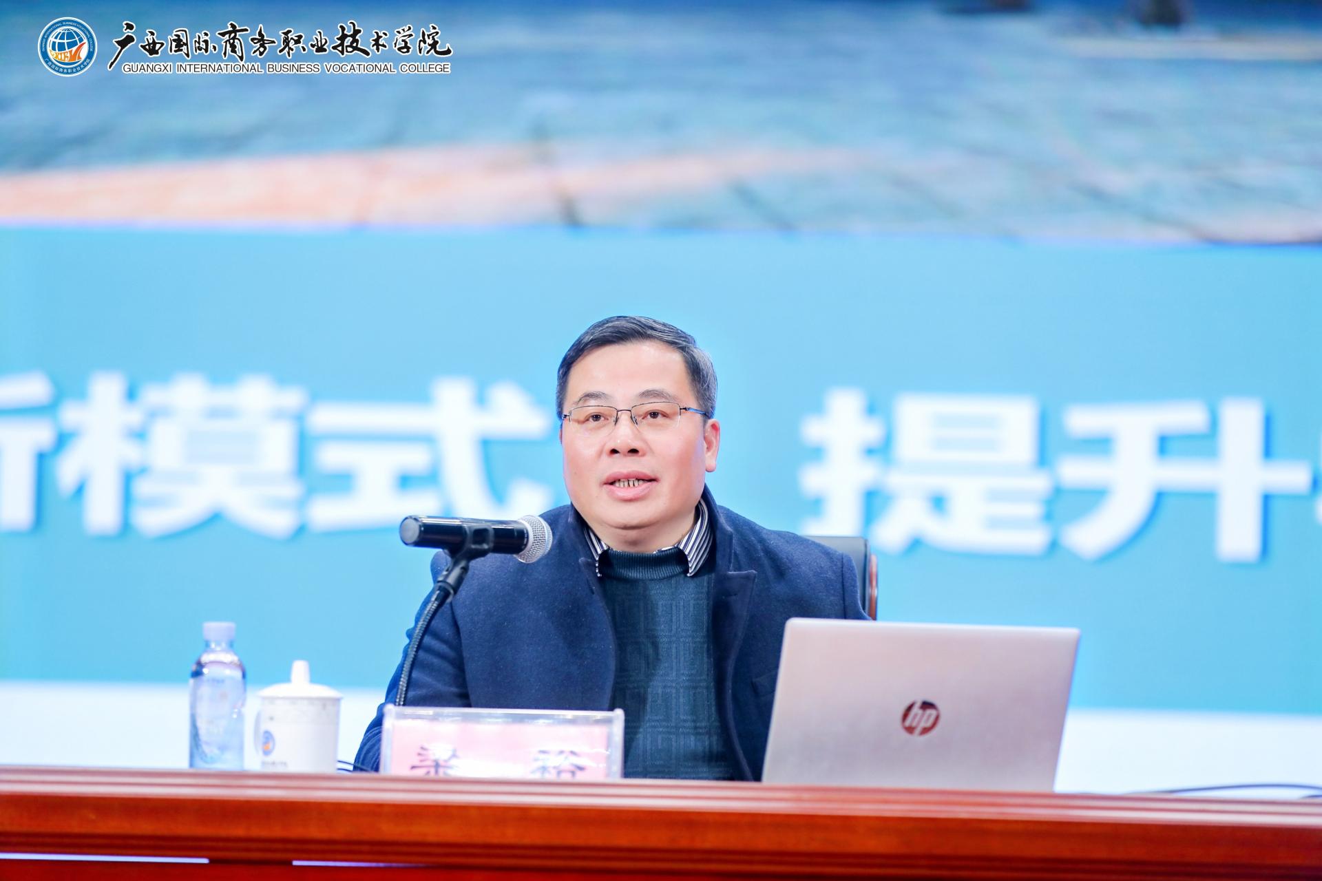 王屹围绕关于习近平总书记对广西重大方略要求、教育部与广西签署部区共同推进广西教育高质量发展合作、职业院校落实“广西与教育部战略合作协议”的行动方略及深化市域产教融合联合体建设,促进广西职业教育高质量发展等四个方面的内容进行经验分享,为学校在落实习近平总书记对广西重大方略要求中实现学校高质量发展提供了指导方向。在教育教学工作审核评估专题培训讲座中,他分析了教育教学工作审核评估相关文件办法出台背景以及政策文件依据,对教育教学工作审核评估办法进行对比分析,梳理出广西高职院校教学工作的整体框架结构和办法的设计思路,为我校2024年新一轮高职院校审核评估工作提供了重要的指导意见。