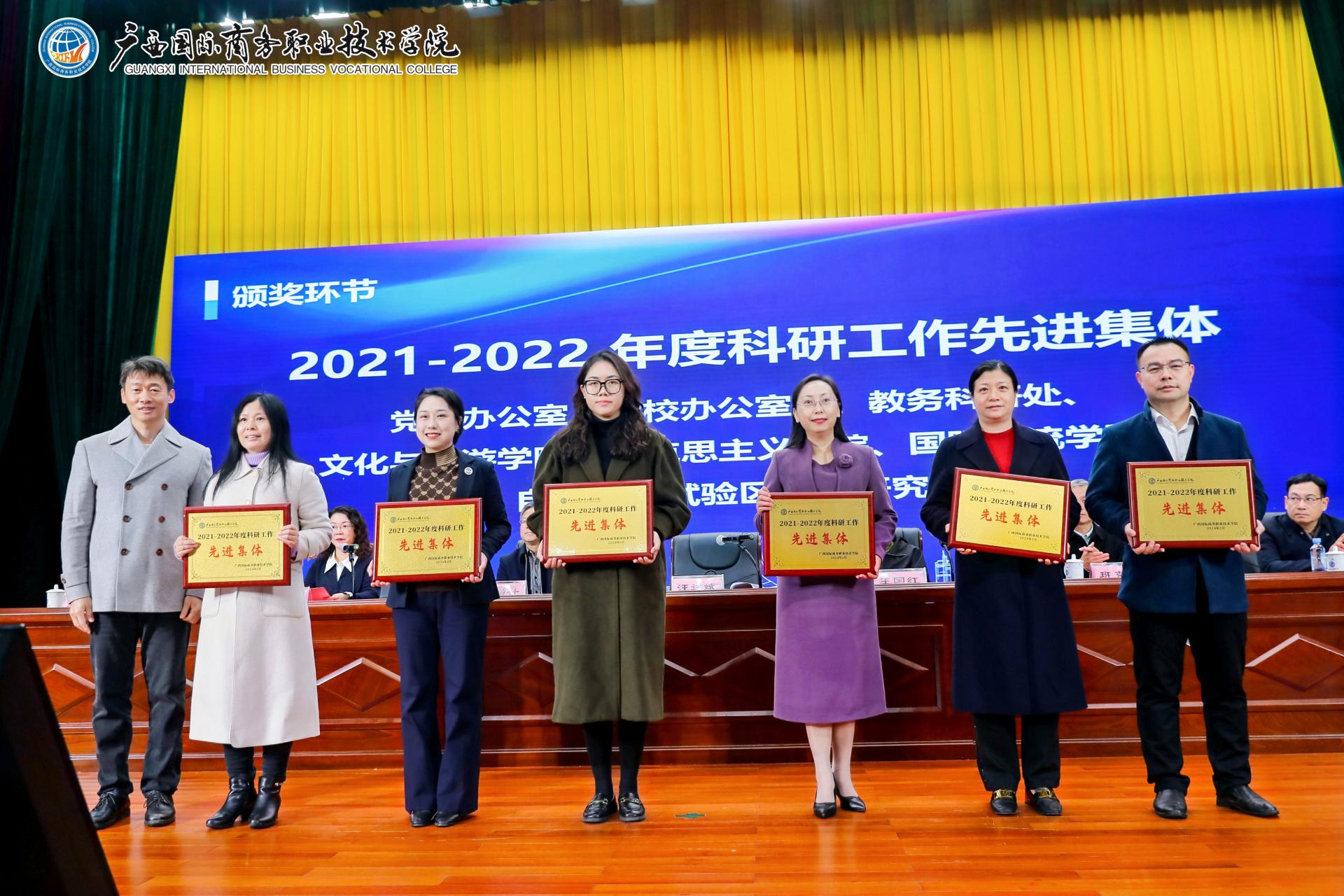 学校领导为2021-2022年度科研工作先进集体获奖单位颁奖