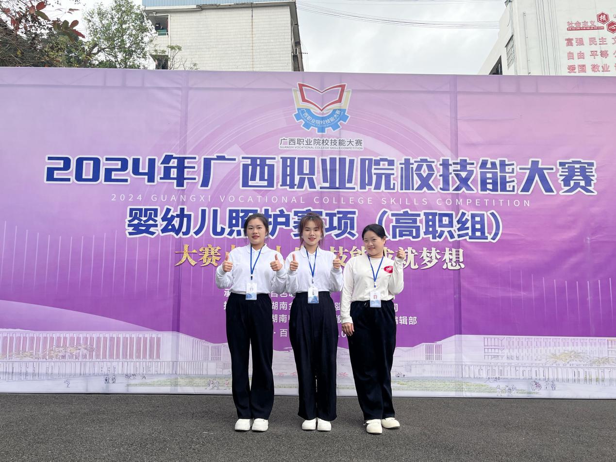 2024年广西职业院校技能大赛《婴幼儿照护》赛项在百色职业学院举行,来自全区的23所职业院校参加本次比赛。我校22级婴幼儿托育服务与管理专业苏小雪、罗娜、冯娜三位同学代表我校参加比赛,与其他院校的22支队伍同台竞技,经过激烈角逐,最终获得团体第十名的成绩。