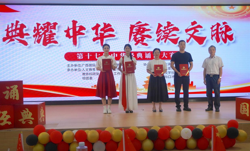 为弘扬中华优秀语言文化,教育和引导广大师生阅读中华经典,传承红色基因,厚植爱党爱国情怀,5月17日下午,“典耀中华 赓续文脉”第十七届中华经典诵读大赛总决赛在东盟校区师生活动中心顺利举行。学校副校长班克庆出席活动并观看比赛,广西民族大学传媒学院副教授熊艳、广西乐达传媒副总经理黄倩和学校人文教育学院院长张海涛等7位校内外专家担任本次比赛评委。