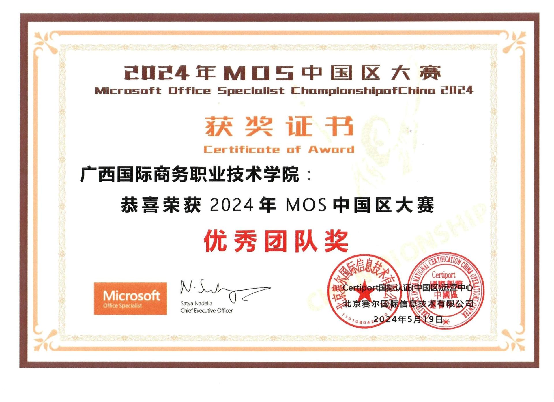 近日,由微软中国、Pearson VUE Certiport与赛尔教育科技发展有限公司联合主办的第二十届MOS(Microsoft Office Specialist)全球大赛中国区总决赛在北京圆满落幕。我校选派21名受助学生代表参加本届MOS大赛全国总决赛,最终斩获冠、亚、季军各1项,一等奖4项、二等奖15项、三等奖20项,并获“2024年MOS中国区大赛优秀团队”奖。其中,莫雨停、黄得荣、梁梅婷3名学生分别获全国职业院校学生Word组冠军、PowerPoint组亚军与Word组季军,晋级世界大赛。