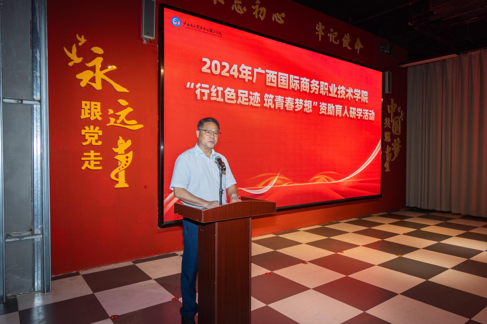 为持续打造资助育人品牌,从保障型资助向发展型资助转变,6月20、21日,我校联合南宁经开区两新领域电影党校、南宁市融媒体中心举办2024年“行红色足迹 筑青春梦想”——“电影艺术+思政教育”资助育人红色研学活动。学校党委副书记青增计,南宁经济技术开发区两新领域电影党校书记刘军,南宁市融媒体中心广电中心广播事业部副主任邓言钒,学校党委学生工作部负责人樊永生、副部长杨文君以及教师代表、受助学生代表等60余人参加了此次活动。