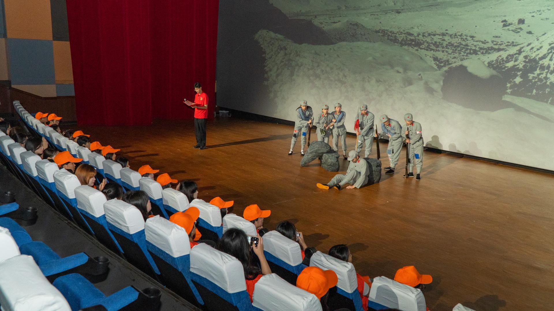 沉浸式电影研学系列活动紧紧围绕“行红色足迹 筑青春梦想”这一主题,以“奋斗者 正青春”为主线,深度融合实景、音乐、舞蹈、情景剧、群像、蒙太奇等电影艺术手法,让走进课堂的师生能够重温党史、新中国史。