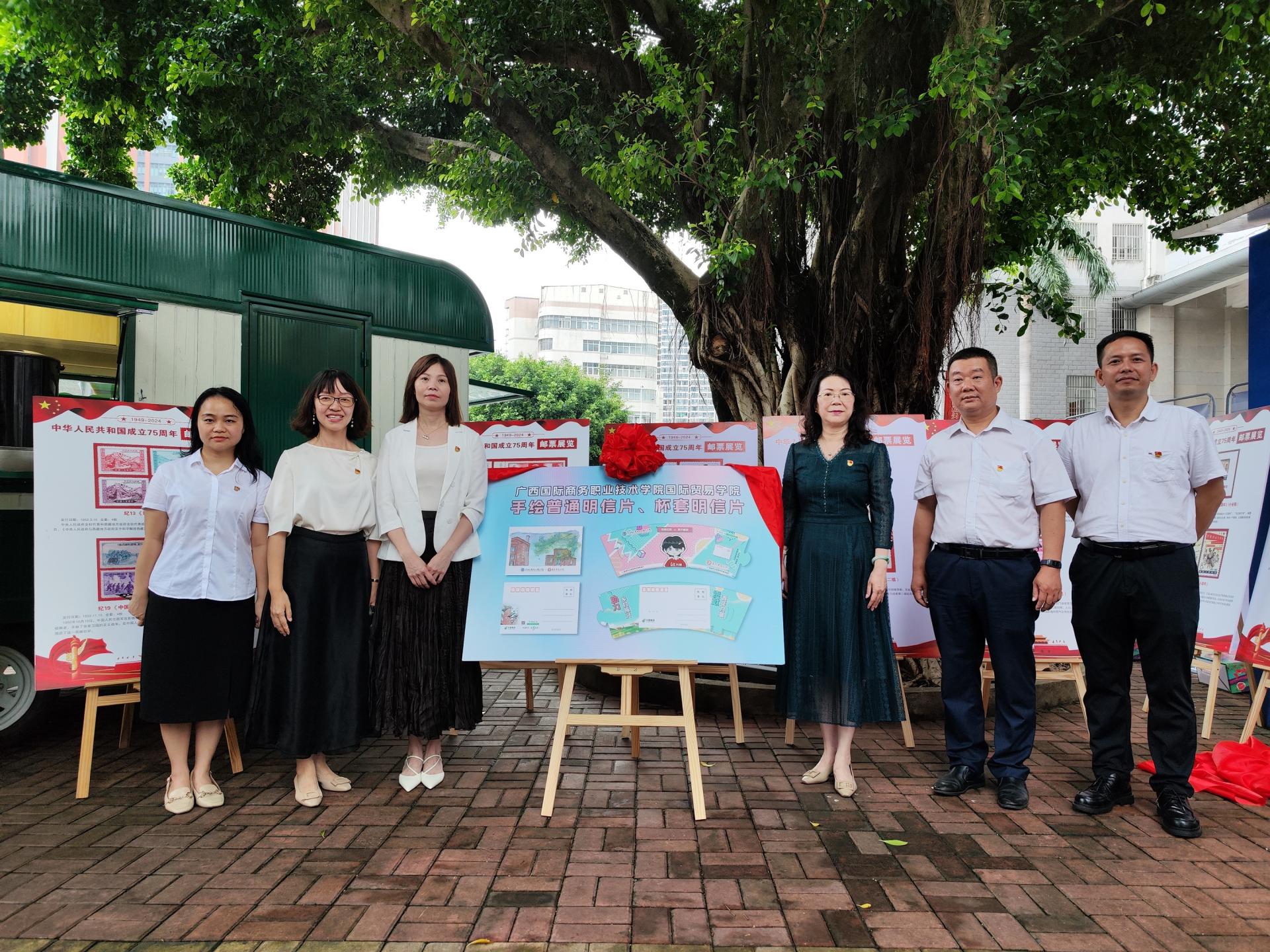 为庆祝新中国成立75周年,加强校企联动,以党建引领,助推乡村振兴,9月10日-12日,我校国际贸易学院党总支结合“桂香红贸”党建品牌与中国邮政集团有限公司南宁市分公司联合开展“党建引领 助力乡村振兴”——桂香红贸&青春邮局(快闪)活动。学校副校长刘杰英,公司党委成员、副总经理郭海燕,学校国际贸易学院党总支书记邓菲,南丹县里湖瑶族乡怀里村白裤瑶技艺大师、阿魅合作社主理人黎国英等出席活动。