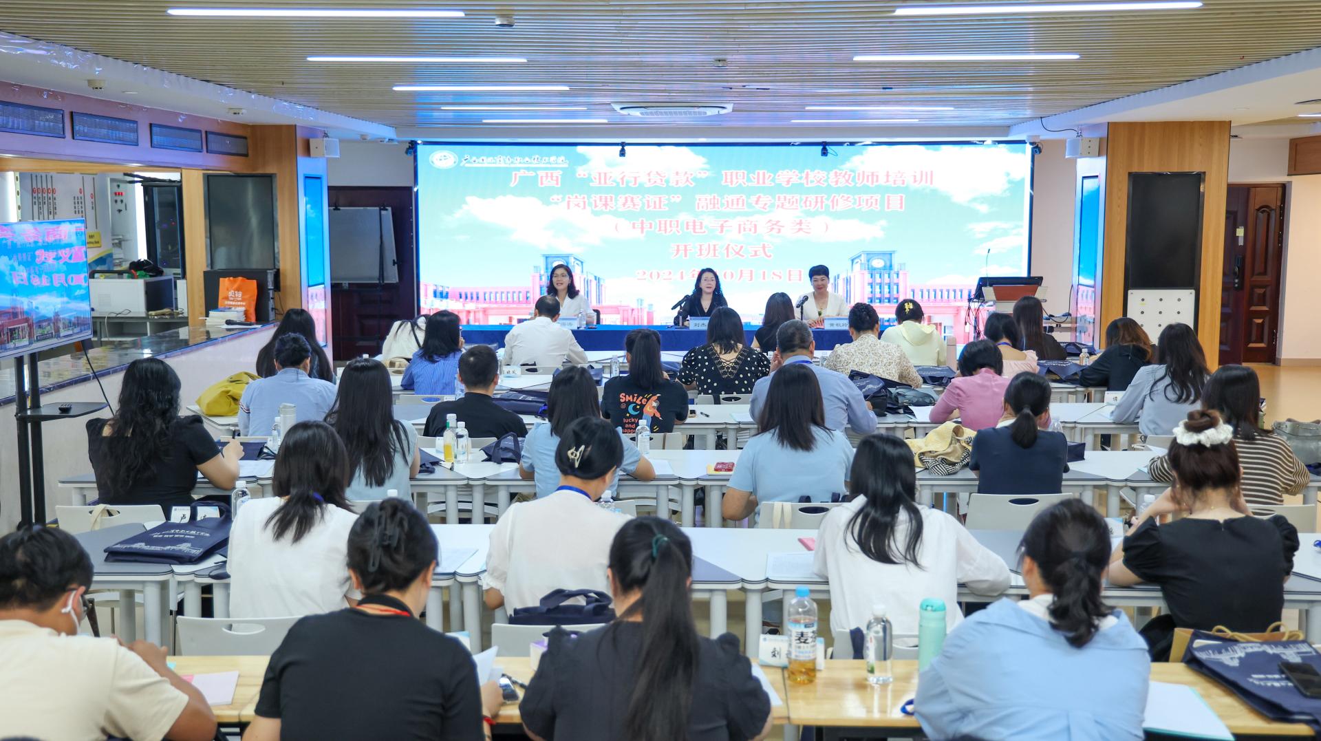 10月17日,广西“亚行贷款”职业学校教师培训——“岗课赛证”融通专题研修项目(中职电子商务类)在我校顺利开班,我校副校长刘杰英出席开班仪式并致辞,国际贸易学院邓海涛院长和来自区内各中职院校的47名学员参加了开班仪式。