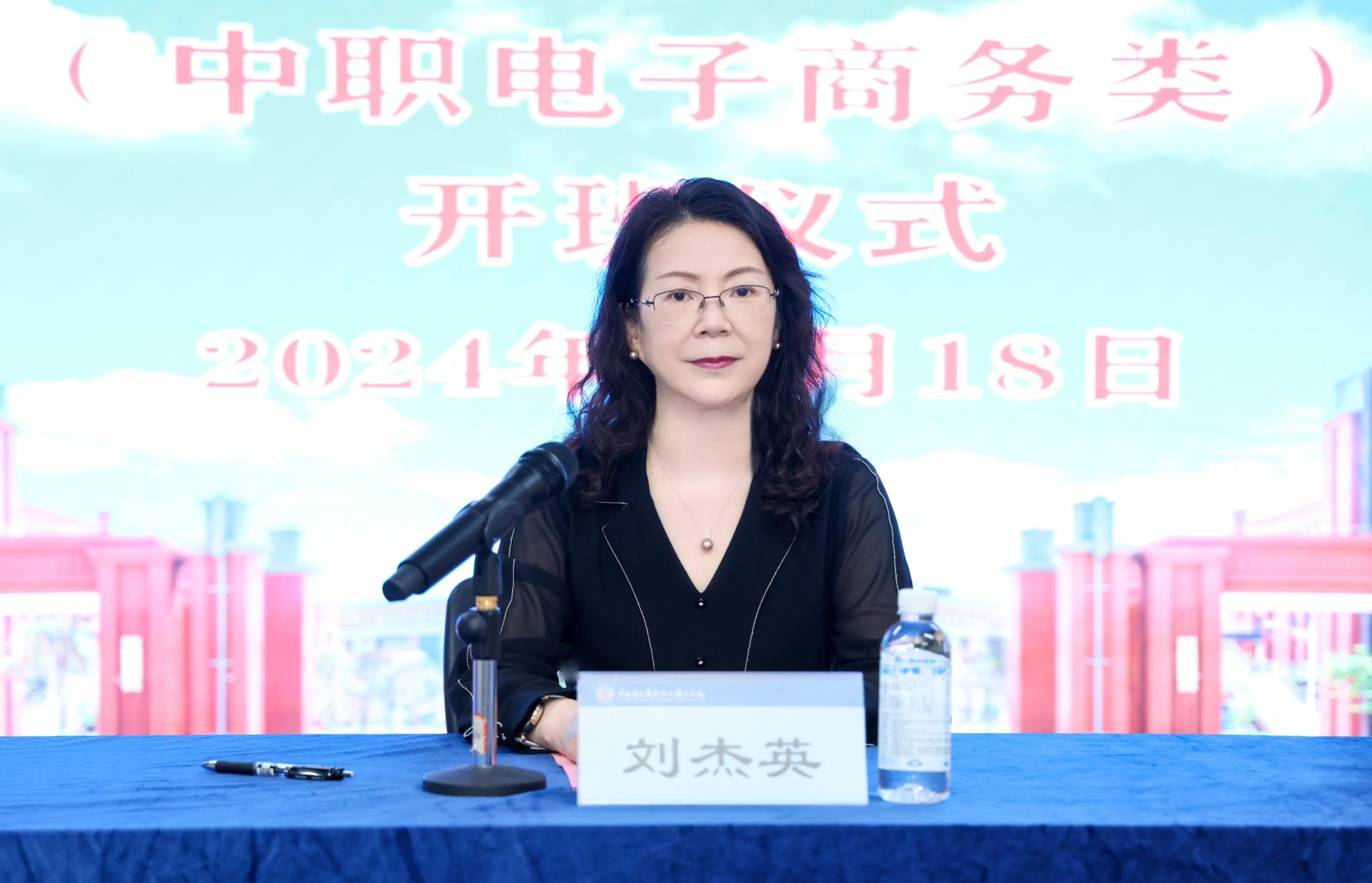 刘杰英介绍了我校的整体情况和跨境电商专业群取得的主要成果。她指出,我校坚持“岗课赛证综合育人”理念,深化产教融合,与优质企业共建产业学院,获批多项“1+X”证书制度试点。跨境电子商务专业正积极创新“岗课赛证五阶递进”人才培养模式,打造“思政浸润”+“岗课赛证融通”模块化课程体系,将课堂理论与实践技能相结合,不断提升学生的批判性思维和创新意识。她希望各位学员专心提升专业素质,学以致用并促进专业成长。鼓励学员将所学应用于工作,提升“岗课赛证”的融通能力,为广西电子商务行业发展及经济高质量发展贡献力量。