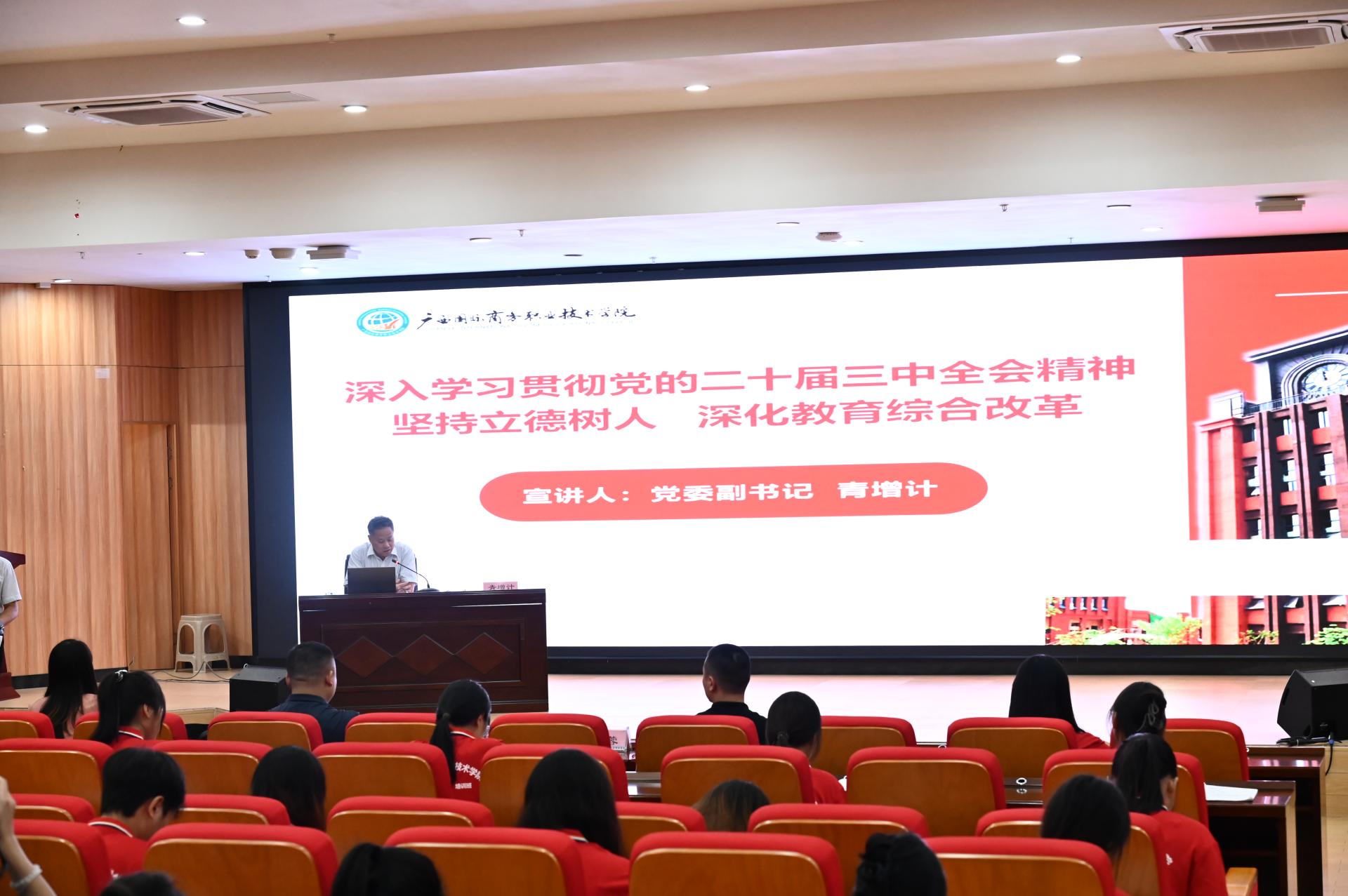 为深入学习贯彻习近平新时代中国特色社会主义思想和党的二十届三中全会精神,贯彻落实习近平总书记关于青年工作的重要思想,在我校青年学生中着力培养一批对党忠诚、信仰坚定、素质优良、作风过硬的青年马克思主义者,10月22日晚,我校第七期“青年马克思主义者培养工程”培训班在东盟校区师生活动中心3楼报告厅开班。学校党委副书记青增计、校团委全体教师、第七期“青年马克思主义者培养工程”培训班全体学员参加了开班仪式。开班仪式由学校团委书记张海涛主持。