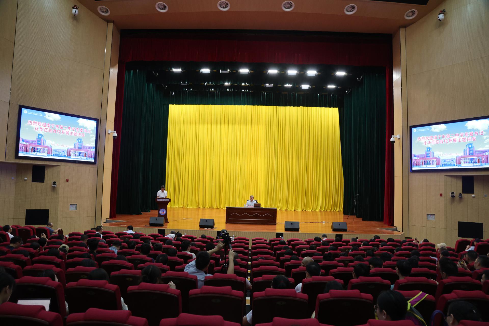 为深入学习贯彻党的二十届三中全会精神,学习贯彻落实习近平总书记在全国教育大会上的重要讲话精神,加快推进教育强国建设,办好人民满意的教育,10月22日下午,南宁市第二中学党委书记徐华受邀到我校作题为《从自发、自在到自觉——弘扬教育家精神,做一位有思想的践行者》的主题讲座。讲座由学校党委书记汪述斌同志主持。学校党委副书记、校长王国红,党委副书记青增计,副校长班克庆、刘杰英、蒋百平,以及近600名教职工聆听了讲座。