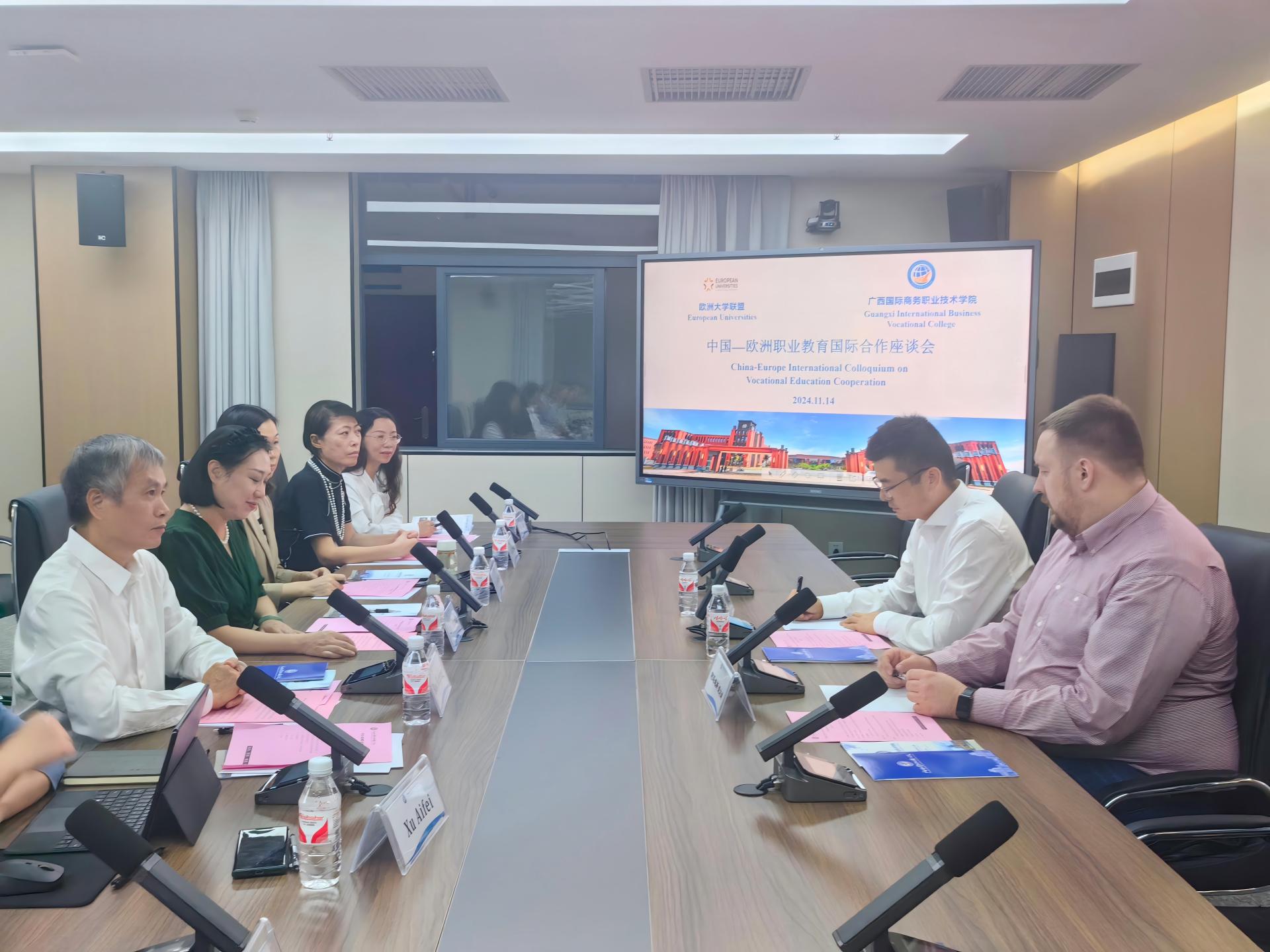 11月14日上午,为深化我校与欧洲大学联盟的国际合作,中欧职业教育国际合作座谈会在我校东盟校区举行。欧洲大学联盟执行总裁、瑞士沙夫豪森大学学院外事副校长Amadeus Werner及中国办公室主任李冰,我校副校长班克庆、国际交流学院、会计学院、文化与旅游学院等相关负责人参加会谈。国际交流学院副院长(主持工作)刘丽欢主持座谈会。